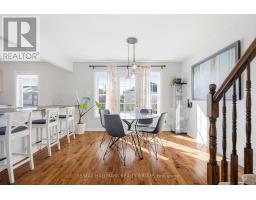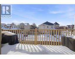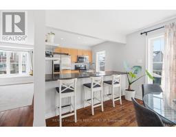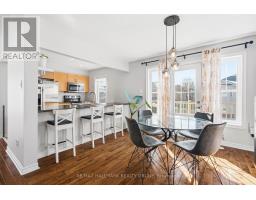 Welcome to this bright and well-kept three-storey corner townhome, offering a functional layout and excellent natural light throughout. Enjoy the convenience of an attached garage with direct access to the main level, plus a dedicated main-floor office/den-perfect for working from home.The second level features a spacious living room, a separate dining area, and an open-concept kitchen with walk-out to a south west-facing balcony-ideal for relaxing or entertaining. Hardwood flooring flows through the main living areas, complemented by ceramic tile in the kitchen and powder room, and stylish pot lights in the living space and kitchen.Upstairs, the primary bedroom offers a walk-in closet and a private 3-piece ensuite. The second bedroom features a vaulted ceiling and access to a full 3-piece bathroom. Additional highlights include interlock front parking, stainless steel appliances, pull-out kitchen shelving, central vacuum, and updated light fixtures.Recent updates include a new washer and dryer (2023), hot water tank (2023), kitchen pot lights (2024), microwave/vent (2025), refreshed powder room paint, and ensuite bathroom upgrades including quartz counters, new toilet, and updated tiles (2025). Most windows feature blinds for added privacy and comfort.Conveniently located near Tanger Outlets, grocery stores, restaurants, Canadian Tire Centre, public transit, and with easy access to the Queensway. Situated in a family-friendly community-this home is move-in ready and a must-see! (id:50982)