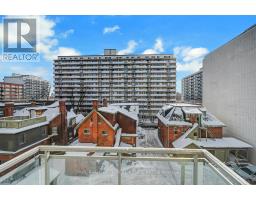 Situated in one of Ottawa's most walkable and desirable neighborhoods, this 1 bedroom, 1 bathroom condo in the Golden Triangle offers an excellent balance of location, functionality, and low maintenance living. With approximately 646 sq. ft. of interior space and a private balcony, the layout feels open, practical, and easy to live in. The interior features hardwood flooring throughout the main living area and an open concept design that comfortably supports both everyday living and a work from home setup. The kitchen offers a well maintained layout with ample cabinetry, generous counter space, and a breakfast bar with included seating, ideal for casual meals or entertaining. The bedroom is well sized and includes a large triple closet, providing excellent storage and organization. Additional conveniences include in suite laundry, window coverings, all appliances, and a roomy storage locker. Condo fees cover heat, central air conditioning, and water, contributing to predictable ownership costs. Residents also enjoy access to building amenities such as a rooftop sunroom and terrace with city views, a library, and a meeting room. Just outside your door, you'll find Elgin Street, the Rideau Canal, Parliament Hill, uOttawa, and transit, making it easy to enjoy morning runs, patio evenings, or a quick commute downtown. Whether you're a professional buyer or an investor focused on location driven value, Somerset Gardens delivers a compelling opportunity in the heart of the city. Some photos have been staged with virtual artwork on the walls. (id:50982)