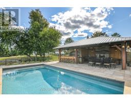 Welcome to the property of your dreams: an ideal hobby or working horse farm depending on the future you are seeking. A beautiful sugar maple lined drive takes you well away from the hubbub of the highway to a lovely home that offers bright rooms with views of the farm from all directions through floor to ceiling picture windows. A large wood deck and a fenced in yard allows the family pets to play in safety.A landscaped path with a mature variety of shrubs and perennials leads from the house to a terraced patio that includes a poolside timber-framed and screened 3 season pavilion defined by unique architectural elements, including an impressive stone fireplace and housing a stainless steel kitchen and private change room. A hot tub and a separate covered wood-fired pizza oven completesthis custom entertainment venue. The saltwater pool overlooks a natural spring fed pondand the entire venue is surrounded by a custom wrought iron fence.Across the drive you enter the world of horses where a lovingly restored vintage barn houses luxury horse stalls and pens for other farm animals, custom lockers for tack, a feed prep area, 2 tack rooms & large run in shelters opening on a sand paddock. The barn and paddocks are serviced by two designated drilled wells and the barn has ample storage for hay. There are several paddocks fenced by patten cedar fencing (many electrified) each having its own equine shelter or small barn, including a medical paddock allowing for quarantine of new arrivals or recovering horses. An exceptional sand ring and an outdoor arena are designed for working and training horses. This could easily be a horse school for those who desire. Adjacent to the barn is a charming and functional insulated chicken coop with electricity, large vegetable garden and a goat enclosure. 85 acres of productive hayfields, pastures and trails completes the picture of this unique and ideal property. All within minutes of amenities in the charming town of Almonte. (id:50982)