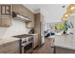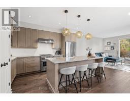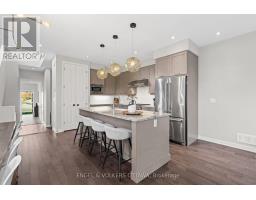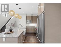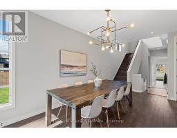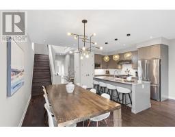 Stunning end unit townhome with one of Riverside South's largest yards, townhomes and singles alike. This showpiece Parkway End Model by HN Homes offers a spacious, smartly designed layout with over 2,500 sq. ft. of finished living space. Situated on a premium pie-shaped corner lot (valued at over 50K), the home features a fully fenced, landscaped backyard, oversized composite deck, 6-zone irrigation system, shed, and gas BBQ hookup, all backing onto mature trees with no direct rear neighbours. Welcomed by an extended wrap-around porch, step inside to the spacious tiled foyer with garage entry and a sleek powder room. The open-concept main floor impresses with 9' smooth ceilings, floor-to-ceiling windows, wire brushed oak hardwood flooring, modern glass railings, and a cozy gas fireplace. A thoughtfully designed main floor den is ideal for a home office, study nook, or play area. The chef-inspired kitchen boasts high-end stainless steel appliances including a 30" Wolf Range, granite counters, ceiling-height soft-close cabinetry, large pantry, and an 8' island seating four. The dining area fits a table for 10 and provides direct access to the backyard. Upstairs features upgraded Berber carpet with premium underpad, a second den/flex space, laundry room with built-ins, and 3 generously sized bedrooms with custom window treatments. The primary suite includes a walk-in closet with organizers and a spa-like ensuite with soaker tub, upgraded glass shower, and extended vanity. The finished basement adds excellent flexibility with in-law suite potential, rec room, ready to finish 4th bedroom, full 4-pc bath, and ample storage. Notable features: Smart thermostat & lighting, custom blinds, upgraded flooring, smooth ceilings, A/C, gas fireplace, and extended driveway for 3-car parking. Every inch of this residence has been upgraded with luxurious finishes and bespoke details, creating a refined living experience beyond compare, this is not your average townhome! (id:50982)