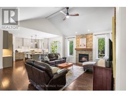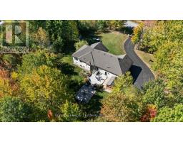 This custom built bungalow is nestled on a private 4 acres with a park like setting featuring numerous species of newly planted vegetation.(list available) Landscaped with walking paths, gardens to be proud of and a privacy to be enjoyed. The open backyard offers a spacious deck on summer days, the fire pit area on cooler evenings or the covered screened gazebo for entertaining or a morning coffee. The interior open concept main level includes, stately cathedral ceilings in the living room with a gas fireplace. The hardwood flooring extends throughout the Living, Dining, Kitchen and hallways. The gourmet kitchen w/granite counter tops, commercial style hood fan, gas range, pantry and Stainless Steel appliances leads to a formal dining area. This main level is a wonderful place to entertain with family and friends. The Primary bedroom has a recently renovated ensuite bath, walk in closet area. The two ample sized secondary bedrooms and has easy access the main 4 piece bath. The extensive 3 car garage has inside access leading to well laid out mudroom and laundry. The professionally finished lower level offers recreational space, 4th bedroom, full 3 piece bath, office area and major storage space. The fabulous home is located in the exclusive enclave of home in West Lake Estates and is only minutes to Kanata, Carp and Stittsville. This curb appeal starts at the elegant front door, throughout the entire interior to the meticulously landscaped acreage. Come visit this home today. 24 hrs irrev on offers as per form 244 (id:50982)