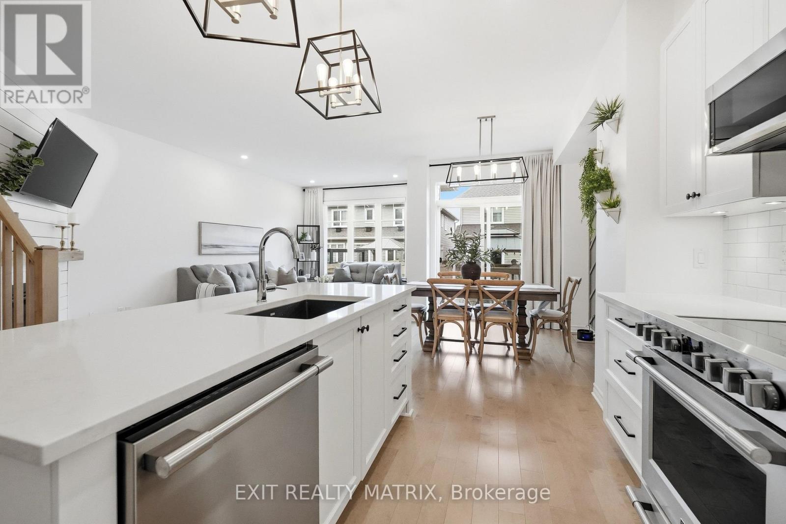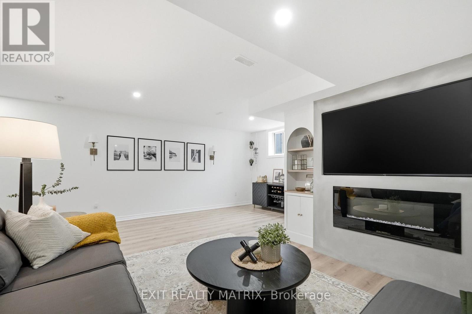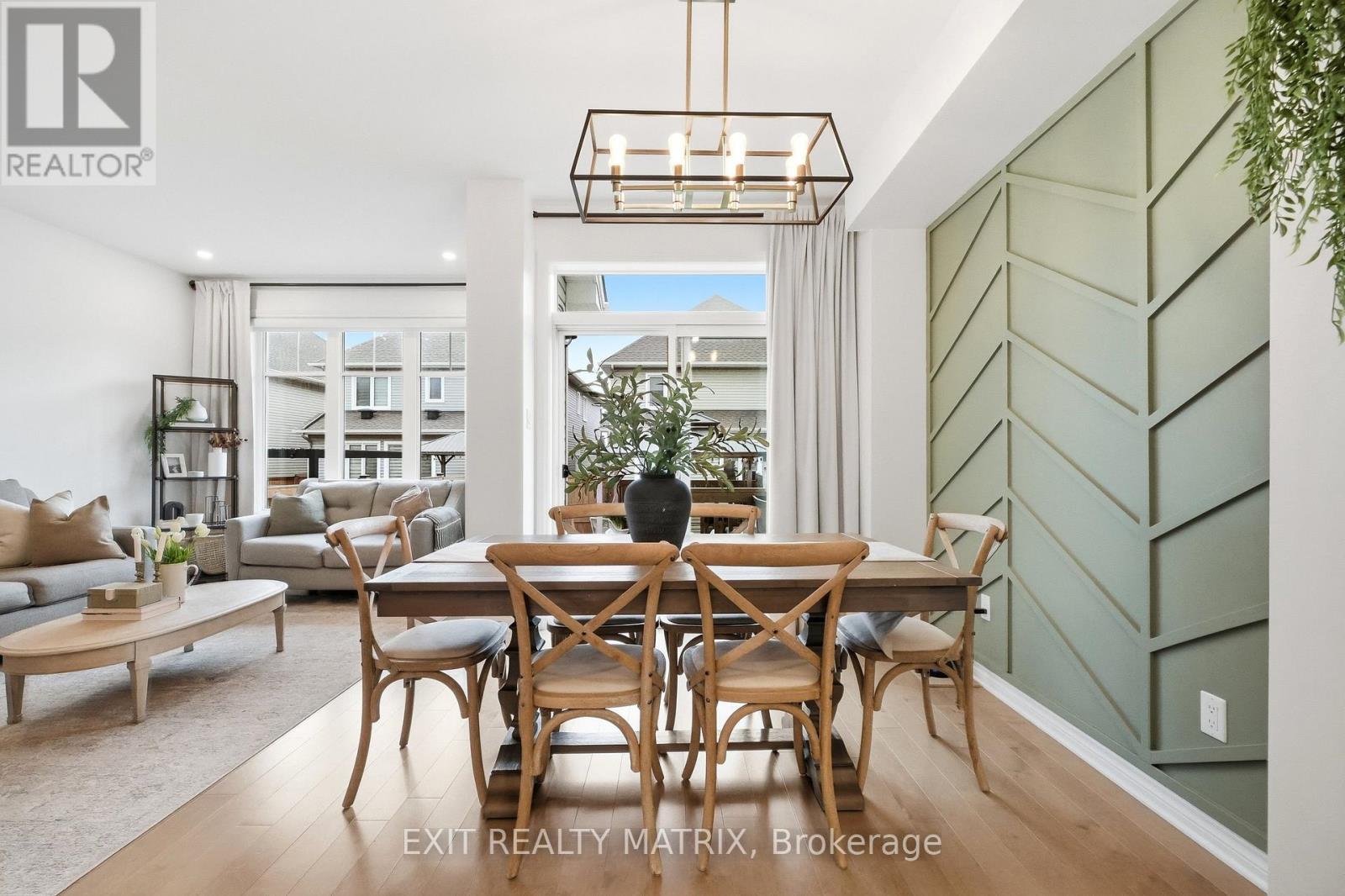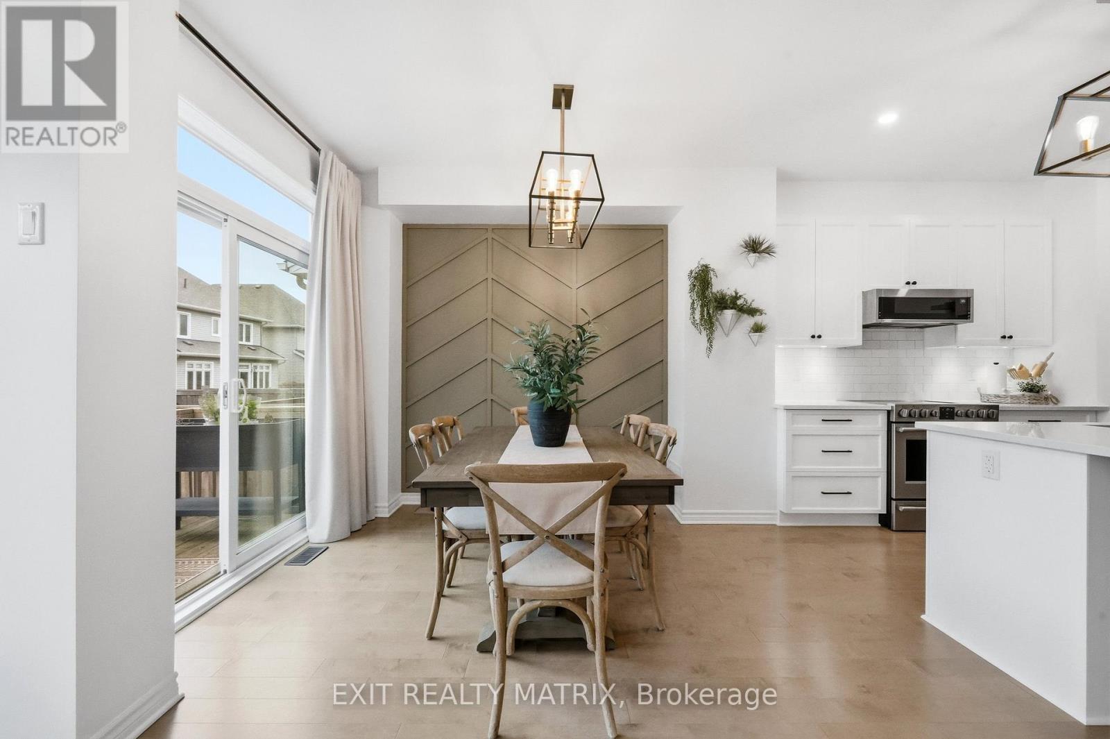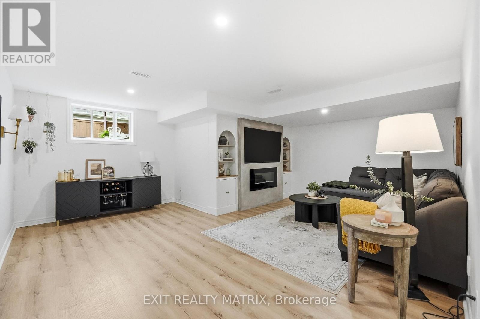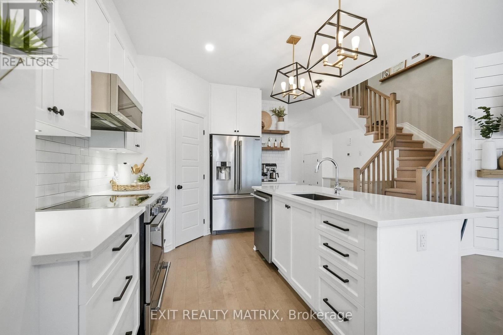 Welcome to this beautifully finished 3-bedroom home, thoughtfully elevated with refined upgrades and tasteful, designer-inspired finishes throughout. Step onto the inviting front porch and into a bright, welcoming entrance featuring a beautiful accent wall and a convenient powder room bath. The main floor impresses with carefully selected upgrades and stylish finishes, including a stunning kitchen complete with island, pantry, stainless steel appliances, and wooden floating shelves. The dining area features a custom accent wall, while the sun-filled living room offers a cozy gas fireplace with shiplap surround is perfect for everyday living and entertaining. Patio doors lead to a deck overlooking the fully fenced backyard, complete with a gazebo - perfect for relaxing or entertaining. Upstairs, the spacious primary bedroom is a true highlight, featuring elegant board and batten detailing, upgraded vinyl flooring, and a luxurious 5-piece ensuite with a soaker tub, double sinks, and a glass-enclosed shower. A walk-in closet with custom-built-in organization adds both style and practicality. Two additional bedrooms, a full bathroom with quartz counters, and a convenient second-level laundry room with extra storage complete this level. The finished lower level continues the home's elevated feel with a gas fireplace and custom built-in shelving-perfect for a cozy family room, media space, or home office. A thoughtfully designed home offering a warm, inviting feel throughout, this home offers a move-in ready opportunity. Located in the desirable Half Moon Bay area, enjoy easy access to nearby green spaces including Half Moon Bay Park and Cambrian Park, offering playgrounds, walking trails, and open spaces for recreation year-round. Just a short drive to the Barrhaven Town Centre, where you'll find shopping, dining, grocery stores, and everyday essentials all in one place. (id:50982)