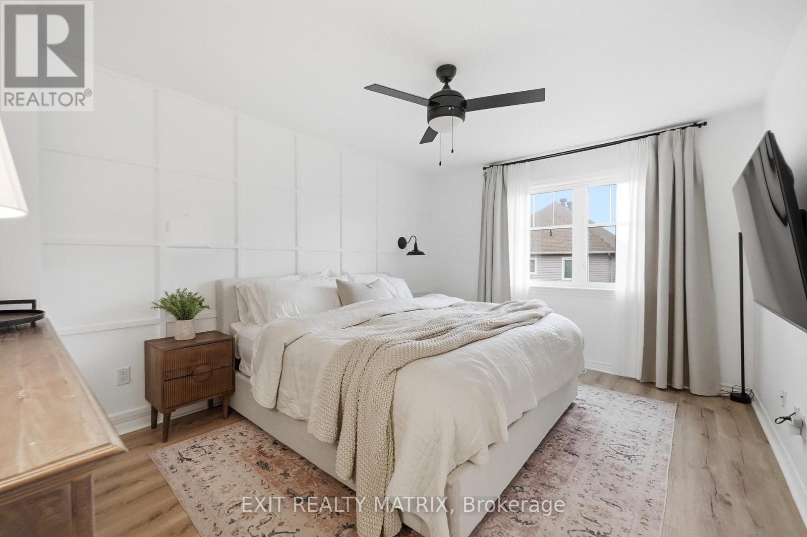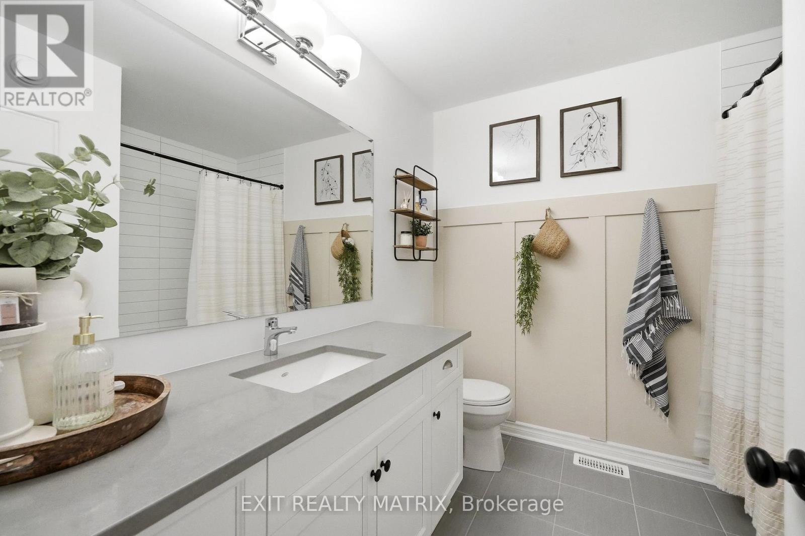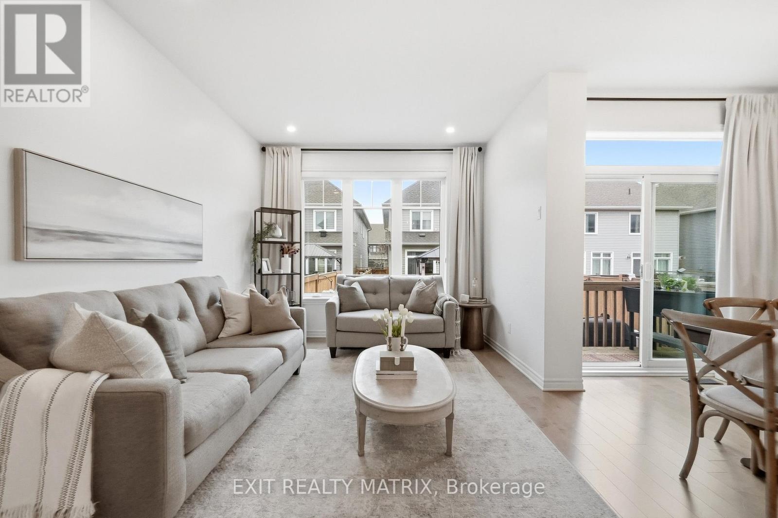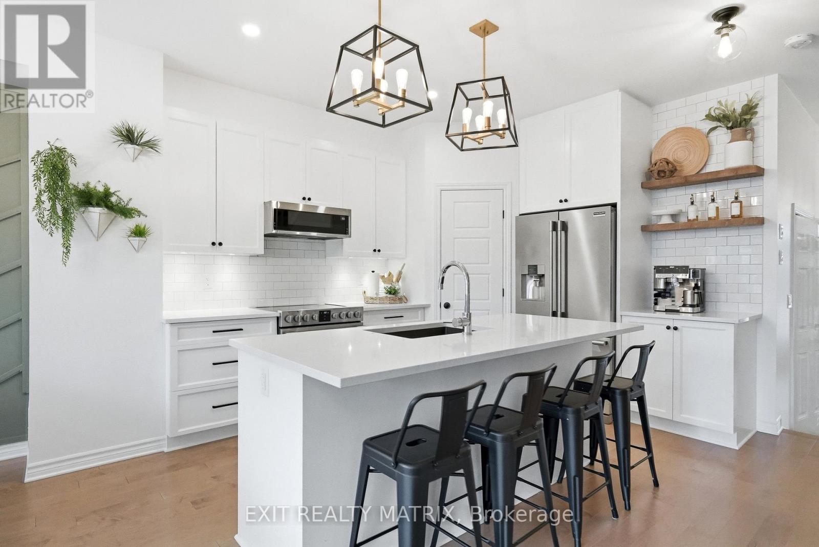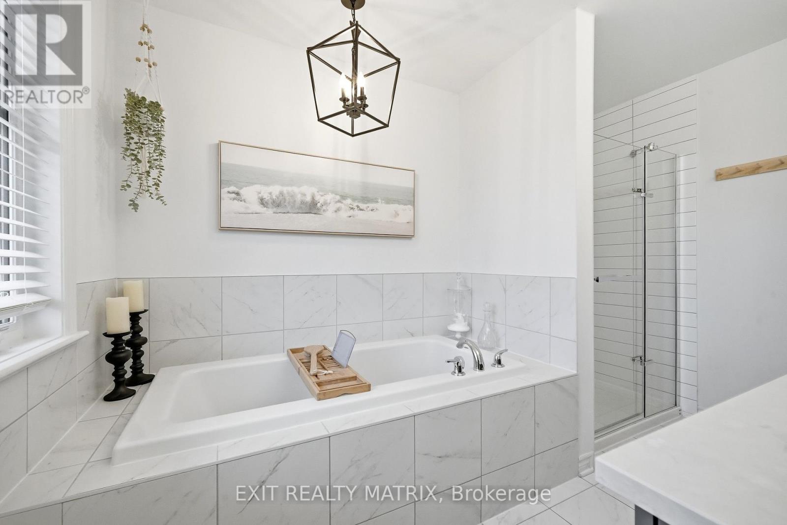 Welcome to this beautifully finished 3-bedroom home, thoughtfully elevated with refined upgrades and tasteful, designer-inspired finishes throughout. Step onto the inviting front porch and into a bright, welcoming entrance featuring a beautiful accent wall and a convenient powder room bath. The main floor impresses with carefully selected upgrades and stylish finishes, including a stunning kitchen complete with island, pantry, stainless steel appliances, and wooden floating shelves. The dining area features a custom accent wall, while the sun-filled living room offers a cozy gas fireplace with shiplap surround is perfect for everyday living and entertaining. Patio doors lead to a deck overlooking the fully fenced backyard, complete with a gazebo - perfect for relaxing or entertaining. Upstairs, the spacious primary bedroom is a true highlight, featuring elegant board and batten detailing, upgraded vinyl flooring, and a luxurious 5-piece ensuite with a soaker tub, double sinks, and a glass-enclosed shower. A walk-in closet with custom-built-in organization adds both style and practicality. Two additional bedrooms, a full bathroom with quartz counters, and a convenient second-level laundry room with extra storage complete this level. The finished lower level continues the home's elevated feel with a gas fireplace and custom built-in shelving-perfect for a cozy family room, media space, or home office. A thoughtfully designed home offering a warm, inviting feel throughout, this home offers a move-in ready opportunity. Located in the desirable Half Moon Bay area, enjoy easy access to nearby green spaces including Half Moon Bay Park and Cambrian Park, offering playgrounds, walking trails, and open spaces for recreation year-round. Just a short drive to the Barrhaven Town Centre, where you'll find shopping, dining, grocery stores, and everyday essentials all in one place. (id:50982)