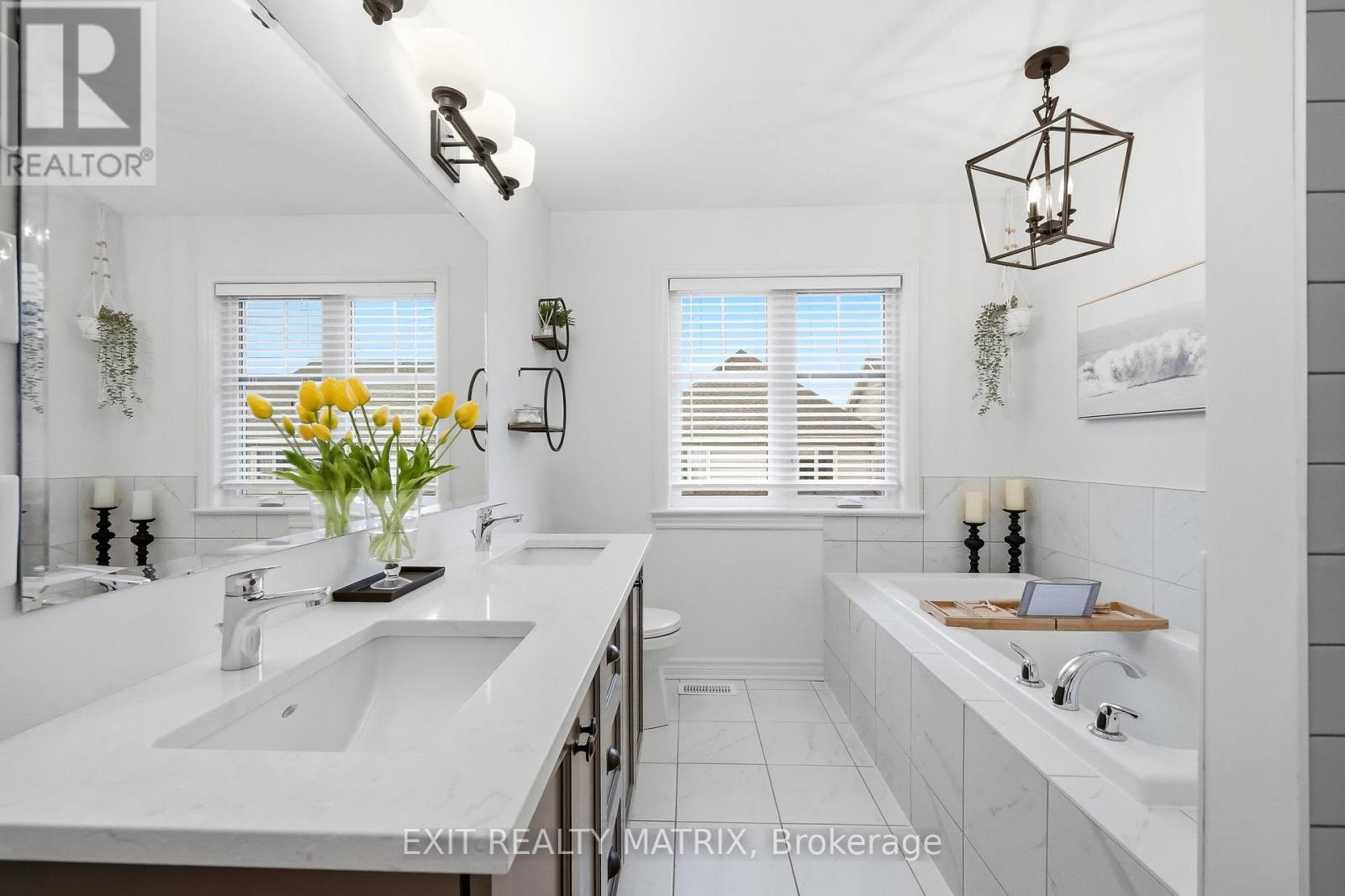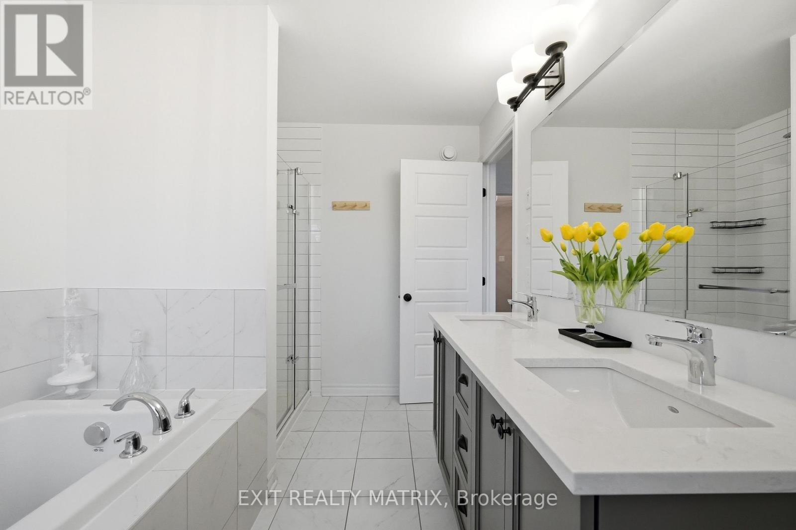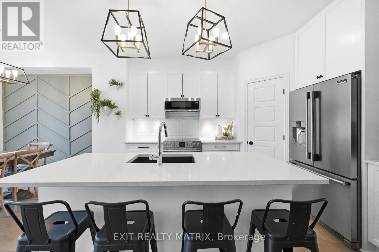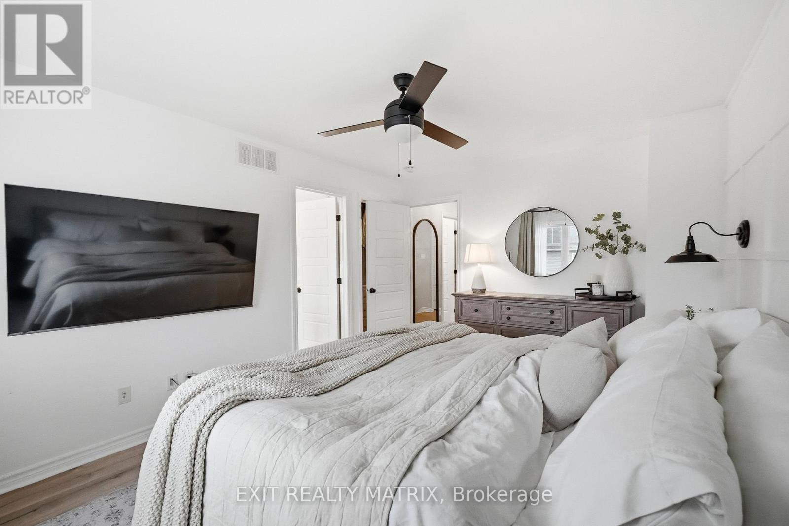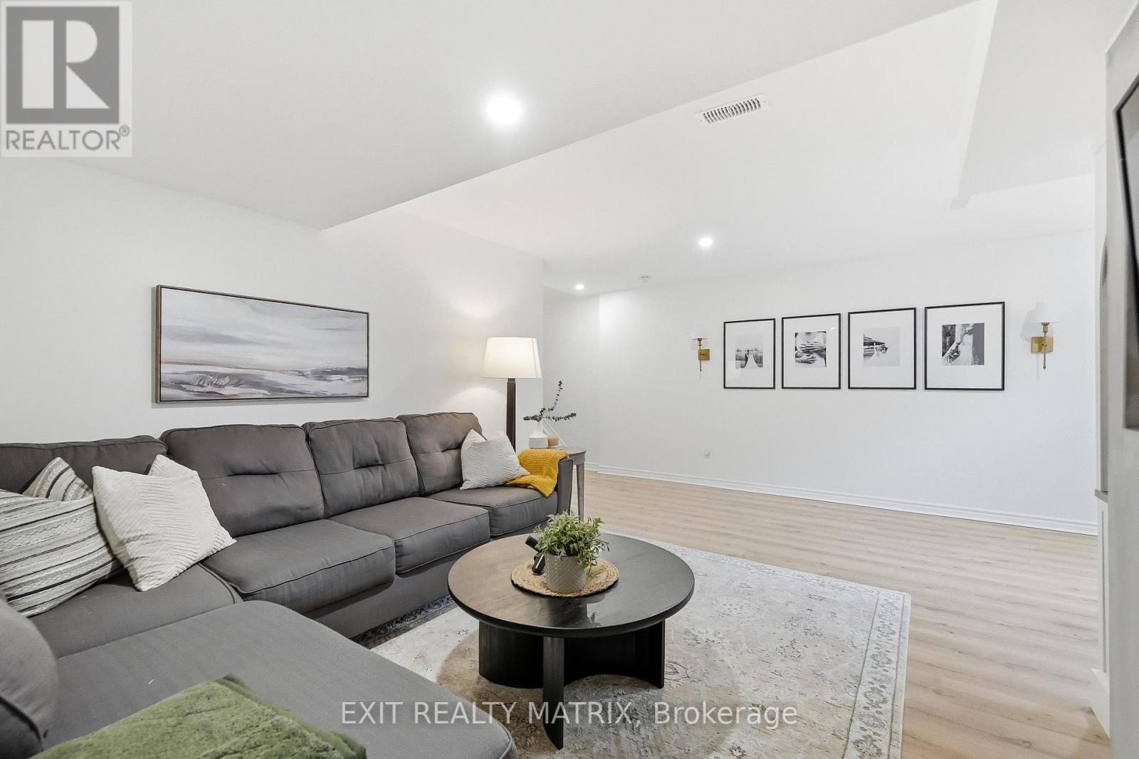 Welcome to this beautifully finished 3-bedroom home, thoughtfully elevated with refined upgrades and tasteful, designer-inspired finishes throughout. Step onto the inviting front porch and into a bright, welcoming entrance featuring a beautiful accent wall and a convenient powder room bath. The main floor impresses with carefully selected upgrades and stylish finishes, including a stunning kitchen complete with island, pantry, stainless steel appliances, and wooden floating shelves. The dining area features a custom accent wall, while the sun-filled living room offers a cozy gas fireplace with shiplap surround is perfect for everyday living and entertaining. Patio doors lead to a deck overlooking the fully fenced backyard, complete with a gazebo - perfect for relaxing or entertaining. Upstairs, the spacious primary bedroom is a true highlight, featuring elegant board and batten detailing, upgraded vinyl flooring, and a luxurious 5-piece ensuite with a soaker tub, double sinks, and a glass-enclosed shower. A walk-in closet with custom-built-in organization adds both style and practicality. Two additional bedrooms, a full bathroom with quartz counters, and a convenient second-level laundry room with extra storage complete this level. The finished lower level continues the home's elevated feel with a gas fireplace and custom built-in shelving-perfect for a cozy family room, media space, or home office. A thoughtfully designed home offering a warm, inviting feel throughout, this home offers a move-in ready opportunity. Located in the desirable Half Moon Bay area, enjoy easy access to nearby green spaces including Half Moon Bay Park and Cambrian Park, offering playgrounds, walking trails, and open spaces for recreation year-round. Just a short drive to the Barrhaven Town Centre, where you'll find shopping, dining, grocery stores, and everyday essentials all in one place. (id:50982)