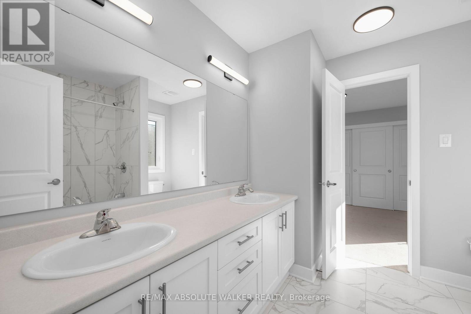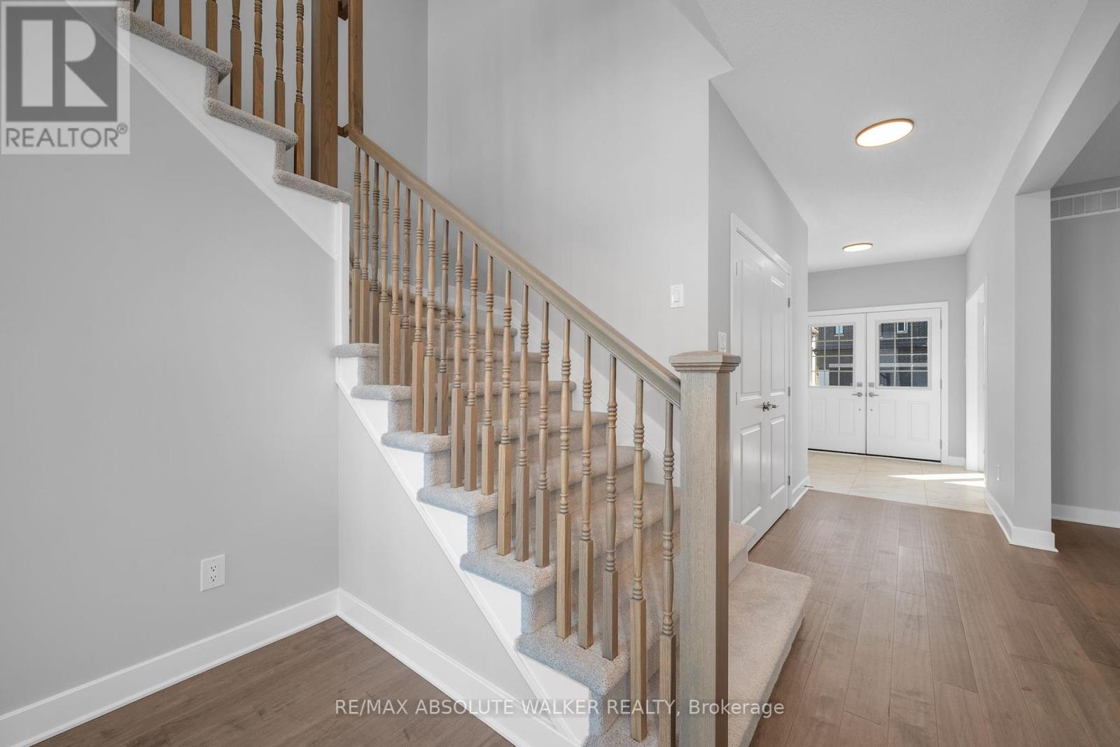 Welcome to the stunning Rutherford model by Phoenix, a highly sought after model in a coveted neighbourhood. Built in 2024, this stunning home offers nearly 2,800 sq ft of thoughtfully designed living space with countless upgrades throughout. Step inside and be greeted by soaring two-storey ceilings in the living room, where expansive windows flood the space with natural light and create a striking focal point. The open-concept design flows seamlessly, making it ideal for both everyday living and entertaining. The second level is home to four generously sized bedrooms, including a luxurious primary retreat complete with a spa-inspired ensuite and walk-in closet. Two of the secondary bedrooms share a convenient Jack & Jill ensuite, while the fourth bedroom enjoys its own access to a nearby bath perfect for family and guests alike. Every detail of this home has been carefully upgraded to provide both style and comfort, from the gourmet-inspired finishes in the kitchen to the thoughtful layout that maximizes space and functionality. Located in the e heart of Findlay Creek, one of Ottawas most desirable and family-friendly communities, this property offers the perfect balance of modern living and a welcoming neighbourhood atmosphere an ideal place to put down roots. (id:50982)
