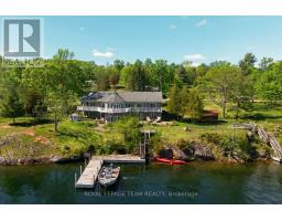 Welcome to a never-before-offered waterfront estate on the prestigious north shore of Big Rideau Lake; part of the world-renowned Rideau Canal, a designated UNESCO World Heritage Site; offering a truly rare opportunity to secure a legacy property with endless possibilities. Set on a private, wooded acreage with breathtaking southeast exposure and exceptional deep-water frontage, this offering is ideal as a luxurious family compound, private retreat, or future development opportunity. The bungalow offers over 5700 sq ft of living space with a bright, functional layout designed for both everyday living and hosting. Featuring four main-level bedrooms and a fully finished walk-out basement, there is ample space for extended family and guests. Inside, you'll find a sun-filled interior enriched by gorgeous millwork throughout, a sunroom, four fireplaces, and a spacious primary suite complete with built-in storage and a 4-piece ensuite. The chef's kitchen is thoughtfully appointed with a wine fridge, built-in oven, and cooktop; perfect for entertaining. Outdoors, the lifestyle truly comes to life. A large deck and gazebo create the perfect setting for lakeside gatherings, seamlessly leading to a large dock and pristine, deep-water access; ideal for swimming, boating, and enjoying everything Big Rideau has to offer. The property is as impressive in function as it is in setting, featuring a oversized detached garage (apprx 30x40ft) with space for multiple vehicles and a heated workshop. Adding to its value and versatility, the property could be parceled together with the two adjacent two acre lots on either side of the home creating a unique opportunity for multi-generational ownership, resale, or future development. This is more than a home; it's a once-in-a-lifetime opportunity to own a landmark property on one of the Rideau's most sought-after shorelines, offering privacy, scale, and limitless potential. (id:50982)