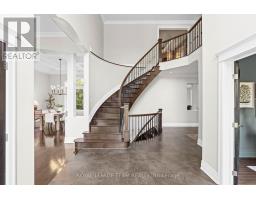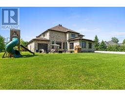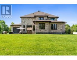 Set in the desirable Emerald Links community of Greely, this beautiful two-storey estate is thoughtfully designed for exceptional family living. Surrounded by natural beauty and just ten minutes from the shops, restaurants, and cafés in the village of Manotick, the location offers a quiet, scenic setting with convenient access to amenities. The home is only steps from the Emerald Links Golf Course and close to the Osgoode Link Trail, a popular route for biking, jogging, and cross-country skiing. This home makes an immediate impression with its striking curb appeal and a designer-finished interior that flows seamlessly through generously sized rooms. A two-storey foyer sets the tone, showcasing elevated coffered and tray ceilings, a spiral staircase, rich hardwood floors, and expansive windows with arched transoms that frame views of the surrounding landscape. At the heart of the home, the Spanish-inspired kitchen is ideal for entertaining, featuring two large islands, two-toned floor-to-ceiling cabinetry, granite countertops, a walk-in pantry, and premium appliances. The main floor also includes a dedicated office, a family room with a cozy fireplace and custom built-ins, and a sunroom complete with a fireplace and views of the backyard. Upstairs, four spacious bedrooms await, including a sophisticated primary suite with a two-sided fireplace, a stone feature wall, a spa-like ensuite bathroom, and a walk-in closet. The finished lower level extends the living space with a recreation room, versatile family areas, a secondary bedroom, flex room, and a full bathroom. Outdoors, the backyard extends the living space and is designed for both entertaining and everyday enjoyment. A spacious patio overlooks the landscaped grounds, while mature trees create a natural and private backdrop. (id:50982)