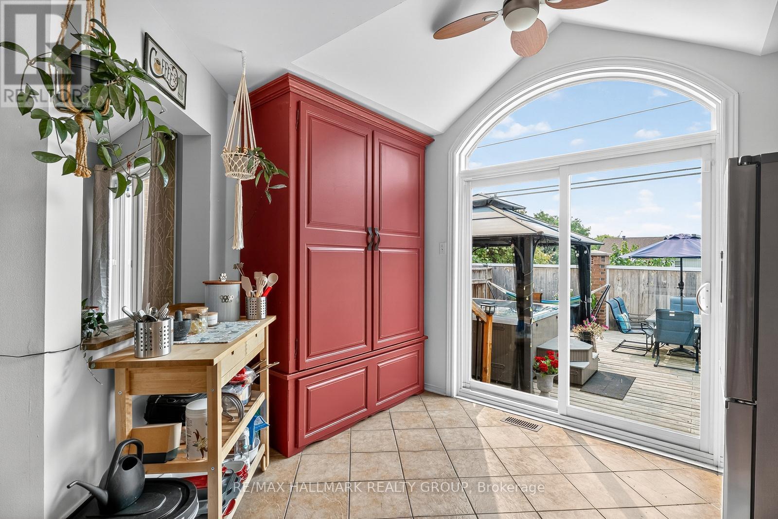 This impeccably maintained 3-bedroom, 3-bathroom row unit offers stylish living with numerous high-end upgrades, including a modern kitchen with quartz countertops, marble backsplash, stainless steel appliances, and task lighting, plus a stunning floor-to-ceiling pantry. The main floor features a dining room, welcoming living room, and a conveniently located powder room. Step outside to a maintenance-free backyard oasis, fully decked and fenced, featuring a 7-person Beachcomber hot tub, gazebo, and natural gas BBQ line - perfect for entertaining. Upstairs boasts spacious bedrooms, including a 3-piece ensuite in the principal bedroom, while the lower level offers a bright family room with high ceilings, laundry, and ample storage. Major upgrades within the last 15 years: patio door, front door, windows, shingles & ice shield, high-efficiency gas furnace, central air, garage door & opener. This home blends comfort, quality, and convenience in every corner! (id:50982)