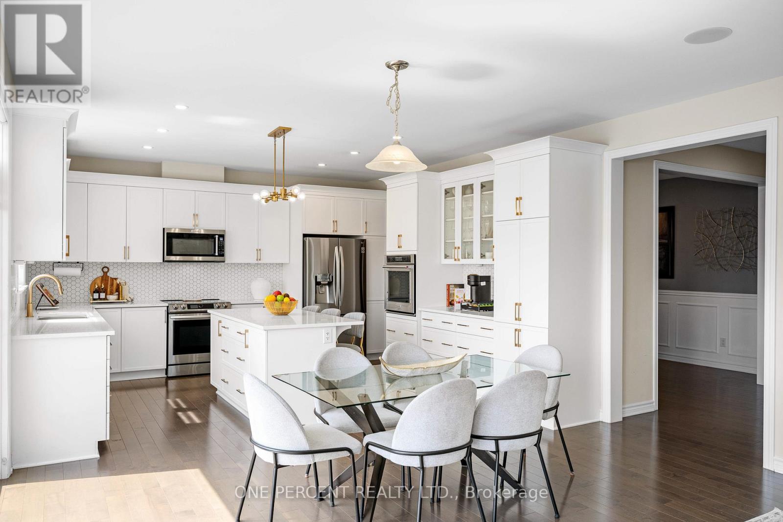 Some homes simply have more of everything. Built by Tartan in 2021, this Cambridge model in Edenwylde delivers over 3,600 sq. ft. of above-grade living space, four bedrooms, two private ensuites, a versatile loft, and approximately $70,000 in builder upgrades throughout. A walk-in closet in the foyer handles everyday arrivals with ease, while a mudroom off the garage keeps the chaos where it belongs. From there, the main floor opens into a dedicated office, formal living and dining rooms, and a great room anchored by a gas fireplace. The kitchen is designed to perform and impress, with stainless steel appliances, double ovens, quartz countertops, a coffee station, and a stylish backsplash while hardwood flooring runs throughout the principal living areas. Upstairs, the primary suite is a true retreat: a generous walk-in closet and a spa-quality ensuite with a double quartz vanity, soaker tub, and glass-enclosed shower. A second bedroom has its own private ensuite, while two additional bedrooms share a full bath with quartz counters and double sinks. A dedicated laundry room on this level adds everyday convenience, and the central loft, currently used as a family room, offers flexible space that can evolve with your household. Set in Edenwylde, a family-oriented community in the heart of Stittsville, with parks, top schools, and everyday conveniences close at hand. Check out the virtual tour and book your private showing today. (id:50982)