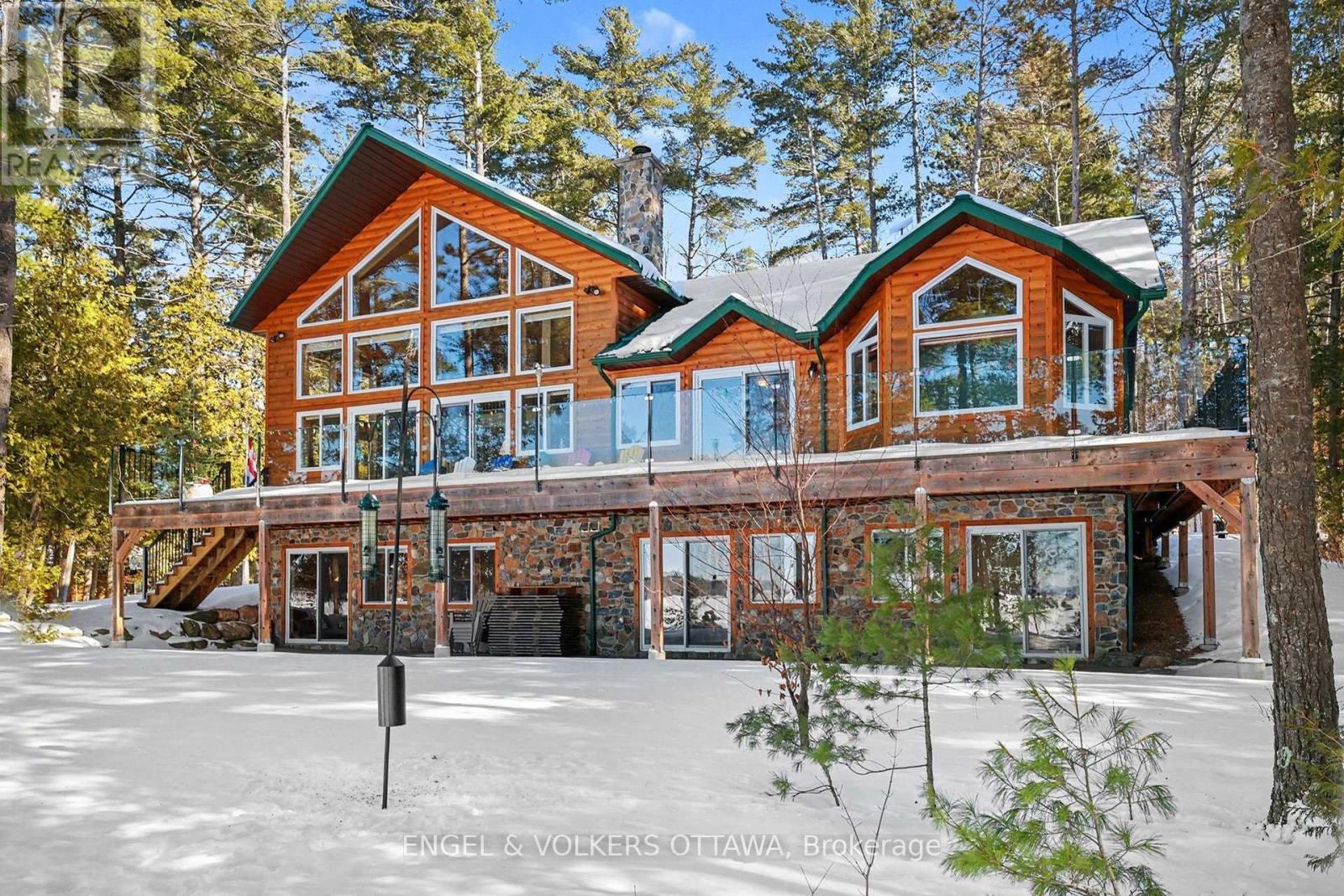 Welcome to 631 Golden Lyn Way! This stunning 4-bedroom, 2-bathroom all-season custom-built residence is located right on the waterfront of the beautiful Golden Lake. Meticulously upgraded and well-maintained, this property offers a true cottage feel without compromising on luxury amenities, comfort, and well-thought-out details. Stepping into the home, you will notice the welcoming feel, hardwood flooring, cathedral ceilings, and big windows that flood the space with light. The spacious kitchen offers a convenient breakfast bar, plenty of counter space & cabinets for storage - perfect for hosting & entertaining. The open-concept living & dining area is the true heart of the home, featuring a grand stone fireplace that serves as the main heat source of the residence - the perfect gathering space to enjoy cozy evenings by the fire. A spacious entry, large primary bedroom, guest bedroom, office space & 4-piece bath round out the main level. Upstairs, the loft offers extra space, with views of the lake & forest. On the lower level, you will find a recreation area, 3-piece bathroom w. a free-standing bathtub, two bedrooms, a dedicated laundry room & plenty of space for storage. All bedrooms in the home feature direct access to the outdoors - whether to the patio on the lower level or wraparound porch and deck on the main level - catching the morning sun while sipping your coffee, or views of the sunset in the evening are guaranteed. The property also features two private docks, a waterfront deck, bunkie with wood stove, boathouse, heated outdoor shower, outhouse w. sink & running water, detached oversized heated 1-car garage, and carport. Only a 20-minute drive away from Eganville, and a 45-minute drive to Pembroke, this is the perfect spot for those leading an active lifestyle, seeking privacy & serenity, who also enjoy the convenience of being close to amenities & vibrant town centres. Don't miss out on experiencing this fantastic turn-key opportunity for yourself! (id:50982)