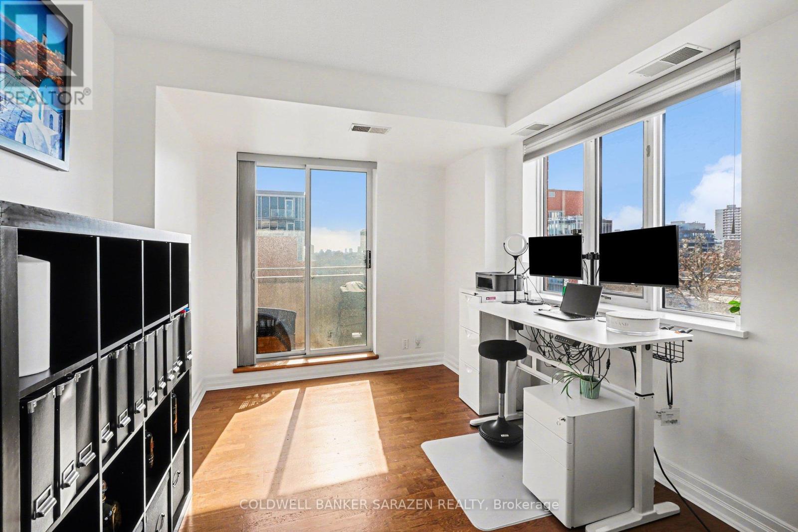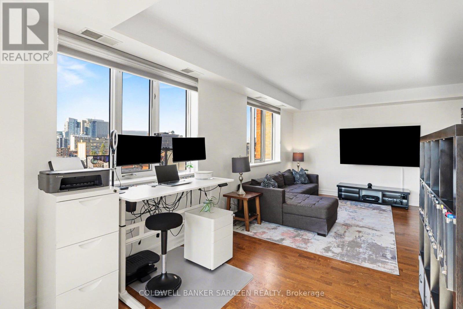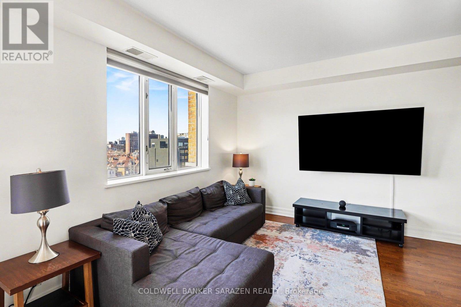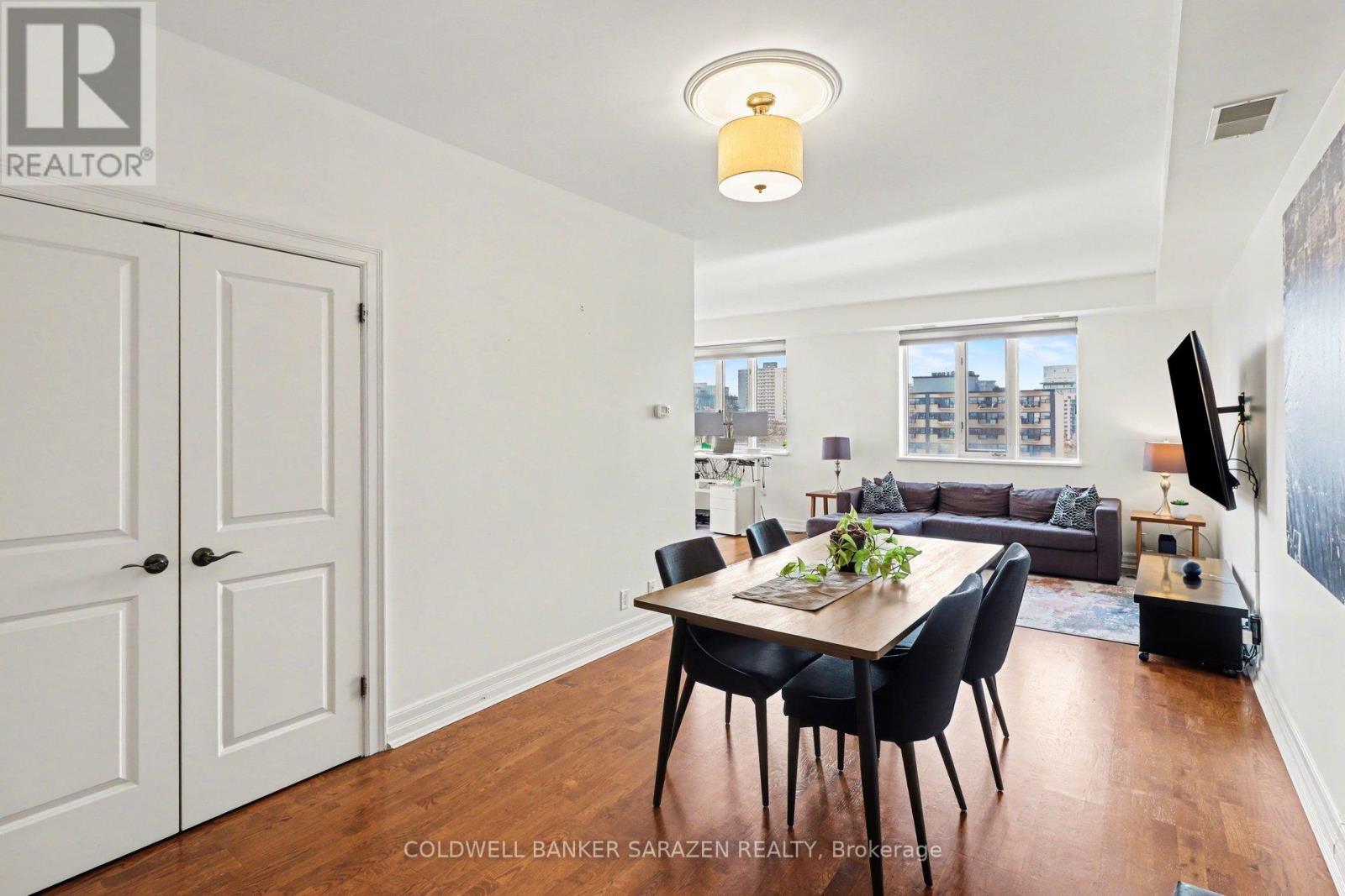 $1,142 MonthlySpectacular City view from this 7th floor 2bdrm+DEN/2bath Exec Apt. Spacious open concept layout with Gourmet kitchen, stainless steel appliances, granite counters, top end cabinetry, gleaming wood floors, large master bdrm with walk in closet and luxury ensuite bath with soaker tub and separate shower, in suite laundry and private open balcony. One Deeded underground parking stall and locker and 2 bike stalls. Popular Opus building with concierge, gym, partyrm patio with BBQ and guest suites and visitor parking. Monthly fee includes heat and pets are allowed. Short walk to Downtown, Glebe, Elgin St and Parliament Hill. (id:50982)
