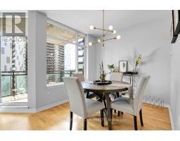 Welcome to a picturesque and quiet spot on the fringe of Centretown at 570 Laurier; a meticulously maintained building, boasting curb appeal and convenience. From the entry, enjoy ample natural light from the back wall windows and glass door to a private balcony. Hardwood flooring, tile and a neutral palette mingle with a mirrored wall and sleek fixtures to create a bright and inviting space. To the left, a well-organized kitchen faces an open-concept living area, with a large dining room, easily convertible to a spacious home office as well. Rest easy in a well allocated primary bedroom, dressed in custom closets and featuring convenient laundry and ensuite bathroom. Exercise is efficient with a well equipped gym and indoor pool. Walk to work, enjoy Centretown amenities and restaurants, and all of the downtown perks at your fingertips. Book your viewing today! (id:50982)