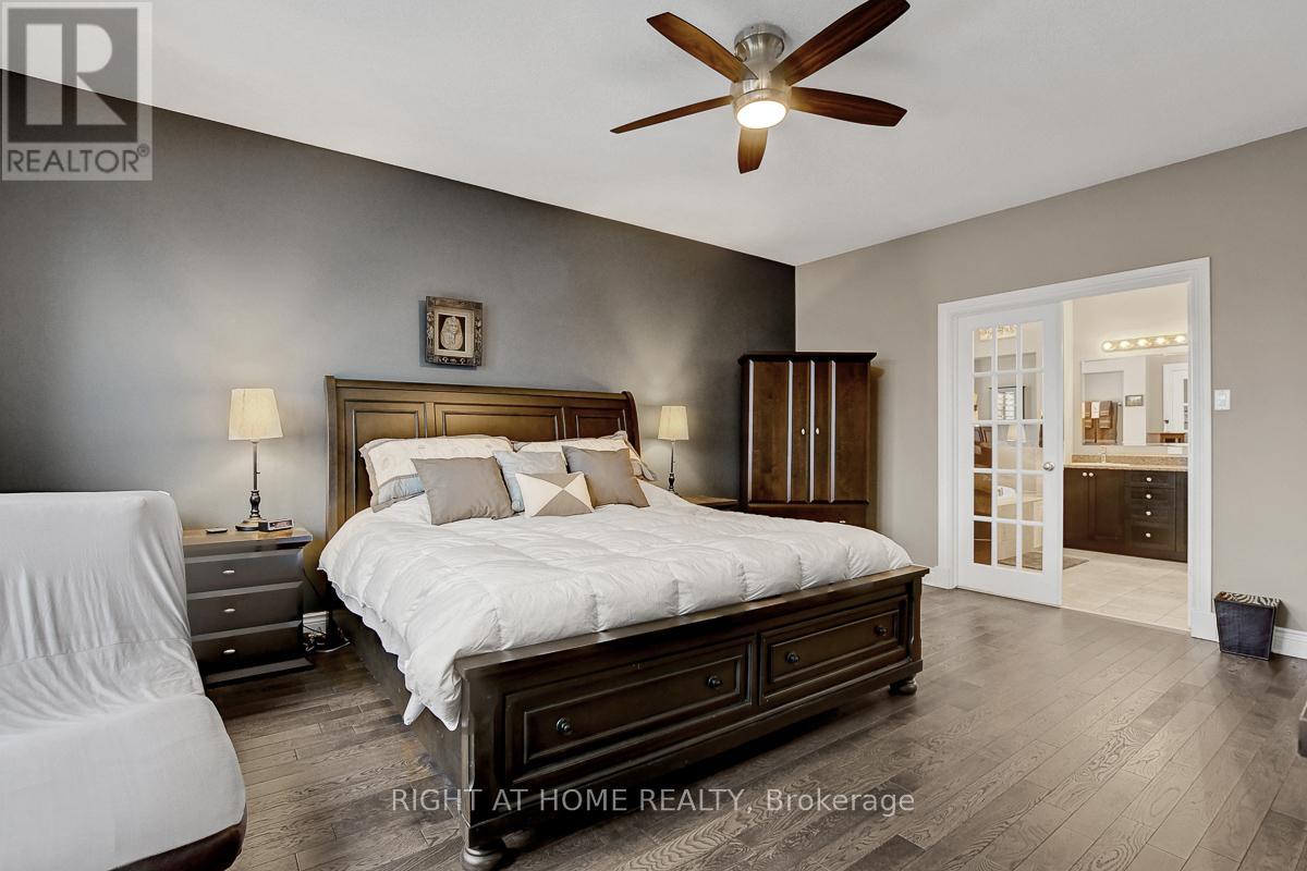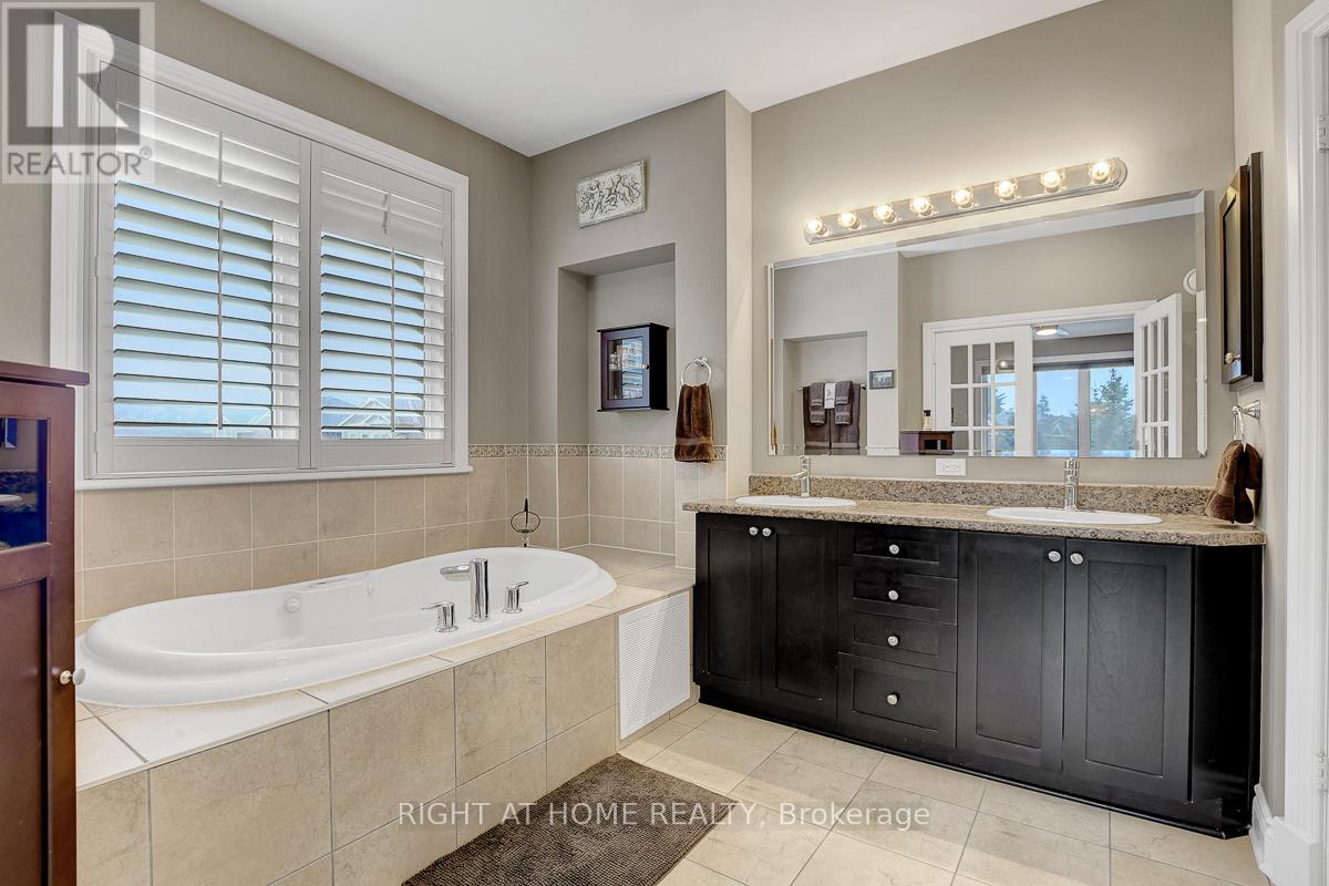 Spectacular 2 storey home set on a premium oversized corner lot in one of Ottawa's most desirable family-friendly communities. This beautifully maintained residence offers exceptional curb appeal, a rare triple car garage, and over-the-top upgrades that truly set it apart. Step inside to a bright and elegant main floor featuring upgraded hardwood flooring, a thoughtfully designed layout, and a high-end kitchen complete with custom cabinetry, granite countertops, stainless steel appliances, and a sleek hood vent. The attention to detail continues throughout the home, with quality finishes, upgraded fixtures, and large windows dressed with premium Hunter Douglas blinds, filling the space with natural light.Upstairs, you'll find 4 spacious bedrooms with newly upgraded hardwood flooring throughout. The primary suite offers a luxurious retreat with a custom walk-in closet organization system and a private ensuite bath. The remaining bedrooms are exceptionally well served by two additional 3-piece bathrooms, providing comfort and convenience for family and guests alike. A second-floor laundry room adds everyday practicality, making daily routines seamless and efficient. The fully finished basement offers incredible additional living space, including a large recreation room, a full bathroom, and a generously sized bedroom-perfect for guests, extended family, or a private retreat.Outside is where this home truly shines. The backyard is a private oasis, fully fenced with composite fencing and professionally landscaped. Enjoy summer days on the multi-level composite deck with gazebo, unwind in the hot tub, or relax among mature trees and thoughtfully designed outdoor spaces. The front yard features extensive interlock landscaping, enhancing the home's already impressive curb appeal. This is a rare opportunity to own a meticulously upgraded, move-in-ready home that offers space, luxury, and lifestyle-all in one exceptional package. (id:50982)