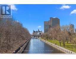 $1,072.53 MonthlyPositioned along the edge of the Rideau Canal, this well-composed two-bedroom, two-bathroom residence is defined by its southern exposure & strong visual connection to the surrounding landscape. The interior layout is organized w/clarity & function. A defined foyer, complete w/a full-width mirrored closet, transitions into a linear galley kitchen featuring shaker-style white cabinetry, tile backsplash, valance lighting, & an oversized sink. The adjacent dining area is anchored by a central chandelier, establishing a formal yet integrated entertaining space. The principal living area is articulated by three oversized patio doors, introducing natural light & extending the interior to an open balcony w/unobstructed canal views. This architectural continuity enhances both spatial perception & daily living experience. A distinct bedroom wing provides separation & privacy, incorporating a walk-in storage/pantry area & dedicated linen storage. The primary suite is oriented to the south, offering consistent natural light, double closets, & a four-piece ensuite defined by large-format wall tile, a custom vanity w/granite countertop, & integrated lighting. The secondary bedroom is configured w/a built-in Murphy bed & millwork, allowing for flexible use as guest accommodation or workspace. The main bathroom is appointed w/a glass-enclosed shower, oversized ceramic tile, & a rain-style fixture w/European faucet. Building amenities extend the living environment, including indoor pool, sauna, fitness & workshop spaces, library, music & billiards rooms, party facilities, & a landscaped outdoor terrace w/barbecue & herb garden. Pet-friendly. 24 hr notice on all offers. (id:50982)