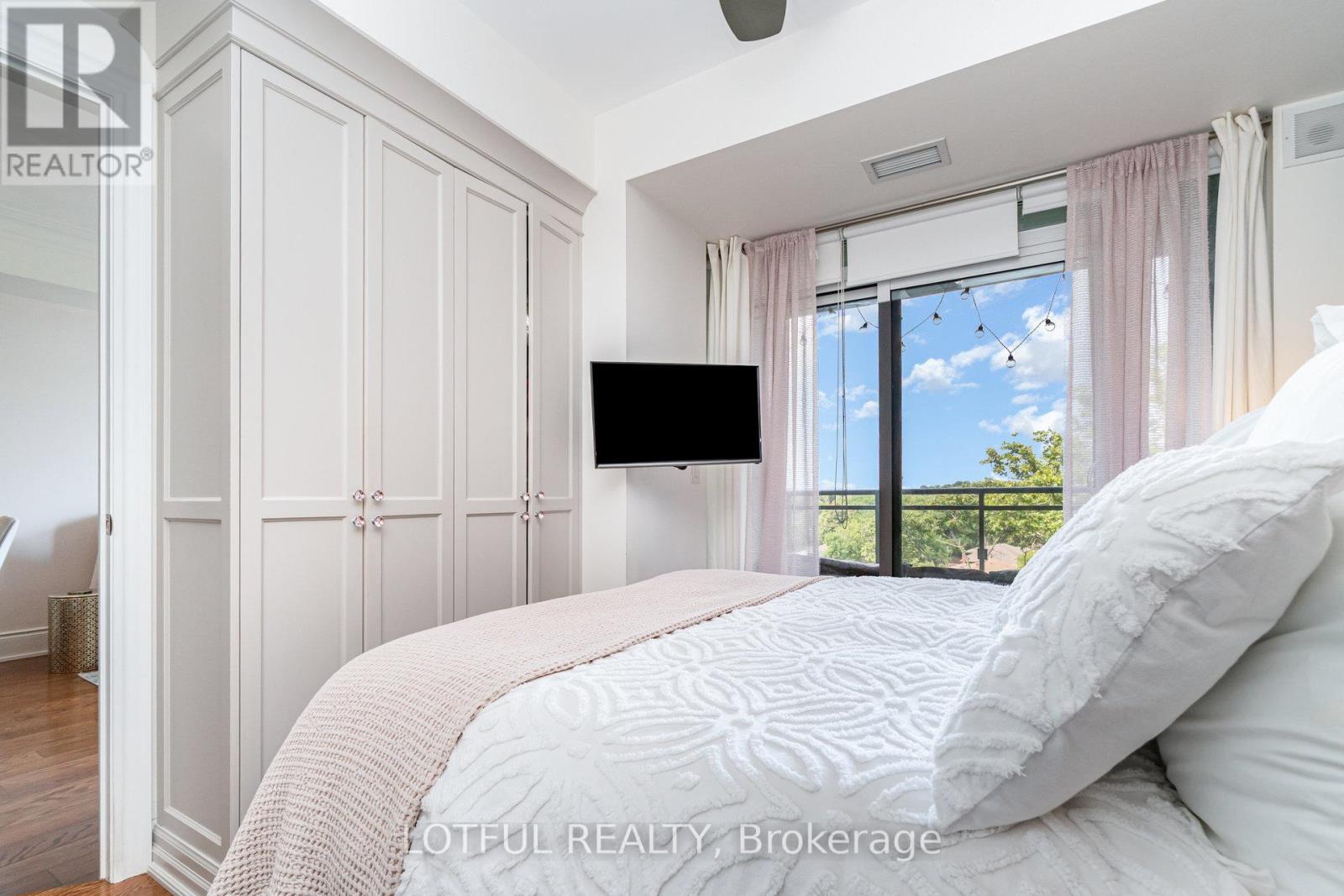 Welcome to BluWater Residences, an exclusive lakeside community offering resort-style living in the heart of Bronte. This beautifully appointed suite showcases stunning sunset and escarpment views with two walkouts to a private balcony complete with a gas hookup for BBQ. The upscale kitchen is finished with quartz countertops, tall cabinetry with glass shelving and lighting, a WOLF gas range with hood fan, and a SUB-ZERO refrigerator with dual freezer drawers. Thoughtful custom touches include a built-in wall unit in the living and dining area and a bespoke built-in with TV mount in the primary bedroom. Elegant hardwood floors, a luxurious four-piece bath with Kohler hardware, in-suite laundry, and an owned storage locker add to the homes appeal. Residents enjoy access to a heated underground parking garage, 24-hour concierge, fitness and wellness centre, spa with saunas and showers, an outdoor pool and hot tub overlooking the lake, beautifully landscaped lounge areas with fireplaces and BBQs, as well as a party room, guest suite, and visitor parking. Located minutes from Bronte Village, waterfront trails, marinas, parks, and fine dining, with easy access to the QEW and Bronte GO Station. BluWater offers not just a home, but an unmatched lifestyle by the lake. (id:50982)