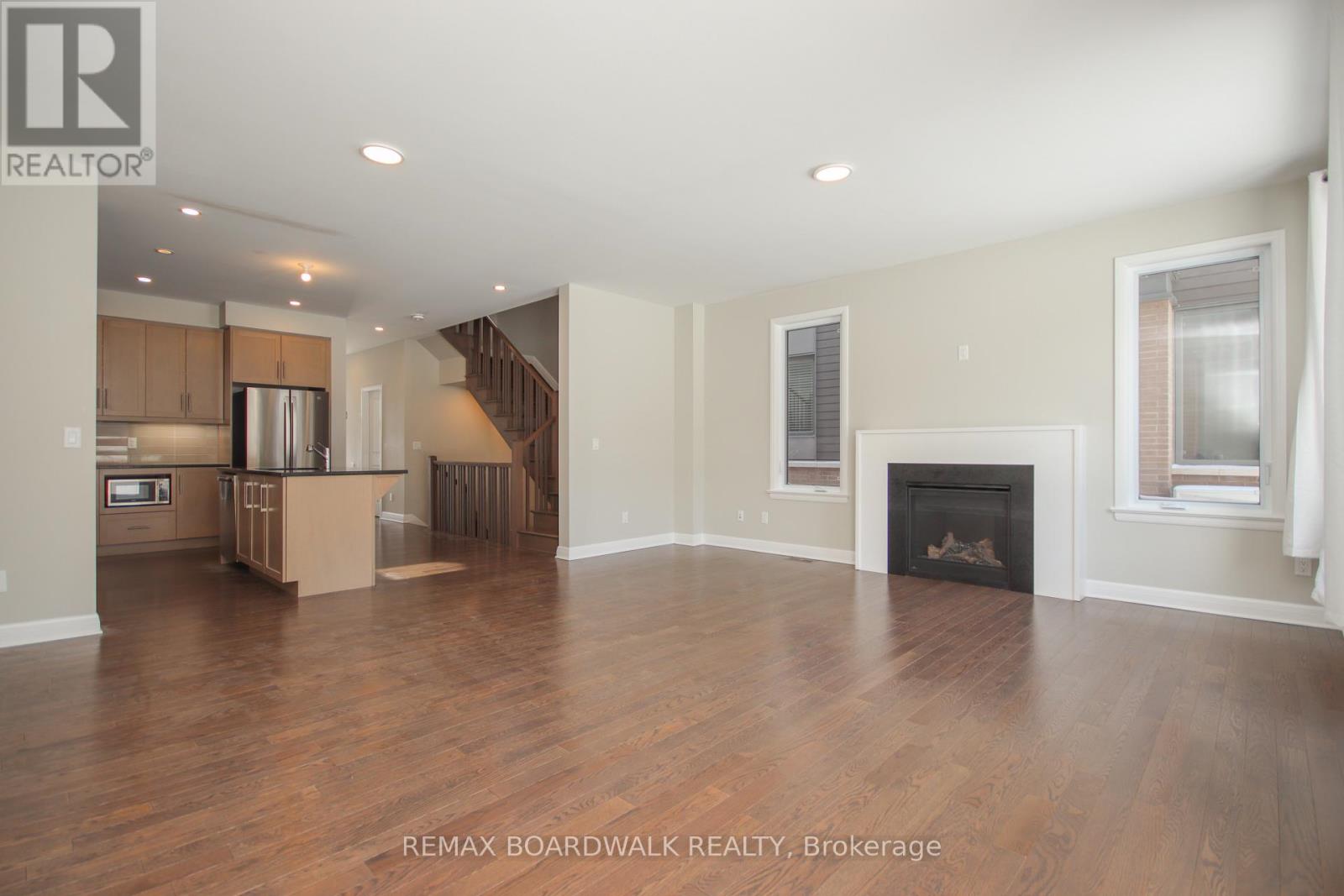 Welcome to this exquisite end-unit townhome in the highly sought-after community of Wateridge Village. Step inside to a spacious foyer leading into a bright, open-concept main level featuring elegant hardwood flooring throughout. The expansive living space and dining area are flooded with natural light anchored by large windows, creating an inviting space for everyday living and entertaining. The chef-inspired kitchen boasts a large centre island, stainless steel appliances, custom cabinetry, and an upgraded hood fan-perfect for those who love to cook and gather. Upstairs, you'll find three generously sized bedrooms, including a luxurious primary retreat complete with a walk-in closet and a spa-like ensuite. Convenient second-floor laundry ensures practicality. The fully finished basement offers a spacious rec room with endless possibilities, ideal for a home gym, media room, or additional living space. Situated in a sought after location, this home is surrounded by parks, scenic trails, and is just moments from the Aviation Parkway. Enjoy walking distance to the Montfort Hospital, and CMHC, with easy access to downtown, shopping, and top-tier schools. Modern living at its finest in one of Ottawa's fastest-growing communities. (id:50982)