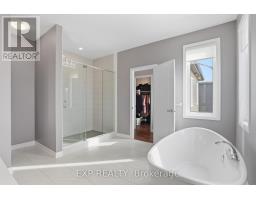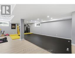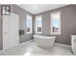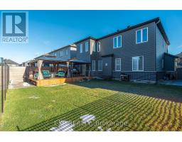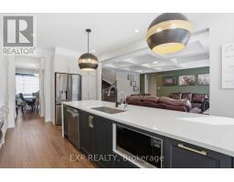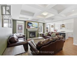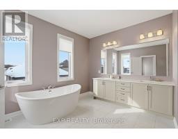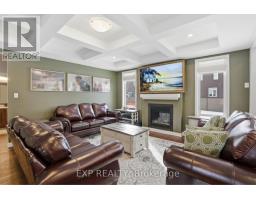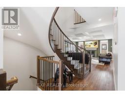 This exceptional Elderberry II model offers approximately 3218 sq ft above grade, plus an additional 1,100 sq ft in the finished basement, with 4 bedrooms, a den, and 5 bathrooms. From the dramatic hardwood spiral staircase and vaulted ceilings to the rare walkthrough kitchen layout, this home offers a beautiful blend of elegance and functionality. With over $200,000 in upgrades, a freshly painted interior, and thoughtfully selected finishes throughout, every detail has been carefully curated. The main level features 9-foot ceilings, a gracious front sitting room, a formal dining area, and a chef's kitchen with top-tier upgrades including a striking waterfall island, oversized sinks, extended cabinetry, custom garbage and recycling drawers, and a walk-in pantry with servery. The kitchen opens to a bright living room with a stunning coffered ceiling. A main-level office or den and an oversized mudroom with a walk-in closet add flexibility and function. Upstairs, you'll find 9-foot ceilings and walk-in closets in every bedroom. The spacious primary suite includes two walk-in closets and a luxurious 5-piece ensuite with a freestanding soaker tub, separate shower, and double sinks. A second oversized bedroom has its own 3-piece ensuite, while the remaining two bedrooms share a Jack-and-Jill 4-piece bath. A large laundry room with sink and cabinet storage adds everyday convenience. The fully finished basement, completed in 2025, adds approximately 1,100 sq ft of living space with pot lights, a wet bar with sink, a full bathroom, and excellent storage. Outside, enjoy a fenced backyard with a gazebo, an oversized 16' x 24' deck, a fully interlocked front yard, double-car garage, 4-car driveway, and exterior lighting on three sides. (id:50982)