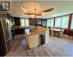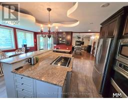 Distinctive custom all stone 4 bedroom bungalow on aprx 1 acre landscape lot in desirable Cotnam Island, Pembroke, with additional feature of a 2 bedroom In-Law Suite. Impressive entry hall welcomes you into this spacious home with aprx 5200 sq feet of living space, this custom home boast large, bright open concept living space with 9 ft ceilings, and high end finishes. Enjoy the ambiance of the 4 sided gas fireplace, accenting living & dining rooms area which open up to a well appointed kitchen with walkout to the screened-in expansive back porch overlooking the landscaped private yard with shed and greenhouse. The large sit in kitchen is equipped with custom cabinets, desk, high end appliances including induction cooktop with downdraft fan, wine fridge & sit at bar. Adjacent to the kitchen is a small den/office, plus main floor laundry room with counter & sink, plus linen closet. The main floor Primary bedroom also opens onto the back screened-in deck, has a walk-in closet and large ensuite bathroom with jetted tub, walk-in shower & heated floor & towel rack. Down the hall, 2 other main floor bedrooms share a 3 piece 'Jack & Jill' washroom. The fully finished lower level basement reveals a large recreation room with a wet bar, in-floor radiant heat, 3 piece bathroom, a 4th bedroom and large storage room. A little further down the hall, access to a 2 bedroom 'In Law Suite' with kitchen/living room, 3 piece bathroom, and a separate outdoor private entrance, which makes this an ideal 'multi generational' home. The double garage & driveway can accommodate 10 + vehicles. Don't let this gem get away, book your showing today. (id:50982)