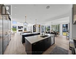 Welcome to 'The Monarch' on McManus, a custom-built residence curated by award-winning O'Keefe-Fiorenza Design Group & completed in 2021 by Relm Construction. Offers 5,600+ sq.ft. of living space w/ premium craftsmanship & attention to detail t/o. Step into a grand foyer & the sun-filled main lvl feat. 10 ft ceilings, wide-plank white oak hardwood & a striking open-concept layout anchored by the 20ft vaulted great room w/ gas fireplace, floating mantle & statement chandelier. The chef & entertaining-inspired kitchen is impressive, showcasing dual oversized islands (one is a true serving island seating for SIX) w/ quartz counters, custom cabinetry, high-end Fisher & Paykel appliances incl. a 6-burner gas range, double wall ovens & integrated fridge, along w/ a serving pantry, wine display & dining area w/ expansive windows. A private front office (or add'l bedroom) w/ floor-to-ceiling windows, a designer 3pc bath, WIC front closet, fully outfitted mudroom w/ custom storage & inside access to the oversized 3 car garage w/ 14ft ceilings. On the 2nd lvl, 9ft ceilings continue alongside a glass-railed private hallway overlooking the great room. The primary suite offers a private & luxe retreat w/ floor-to-ceiling windows, massive custom WIC w/ built-in shelving & drawers, & a luxurious 6pc ensuite feat. a standalone soaker tub, dual rain shower, floating vanity & radiant in-floor heating. Add'l bedrooms are ample in size, incl. a Cheater Ensuite & a separate Bed w/ Ensuite/Guest Suite, while a dedicated laundry suite & linen closet adds convenience. The finished LL expands the living space w/ a rec room feat. fireplace, home health & wellness rm, add'l bed, spa 3pc bath & inside access to garage. Exterior highlights incl. a striking stone/brick/stucco façade & extended driveway. This is a rare opportunity to own a thoughtfully & beautifully designed, turnkey home in a highly sought-after community of Manotick Estates. Love where you live with 'The Monarch'! (id:50982)
