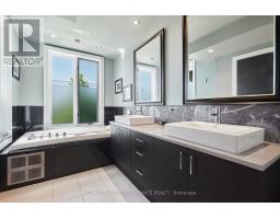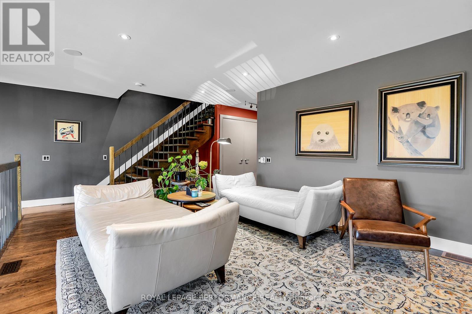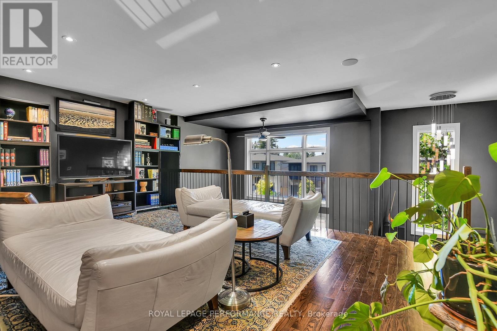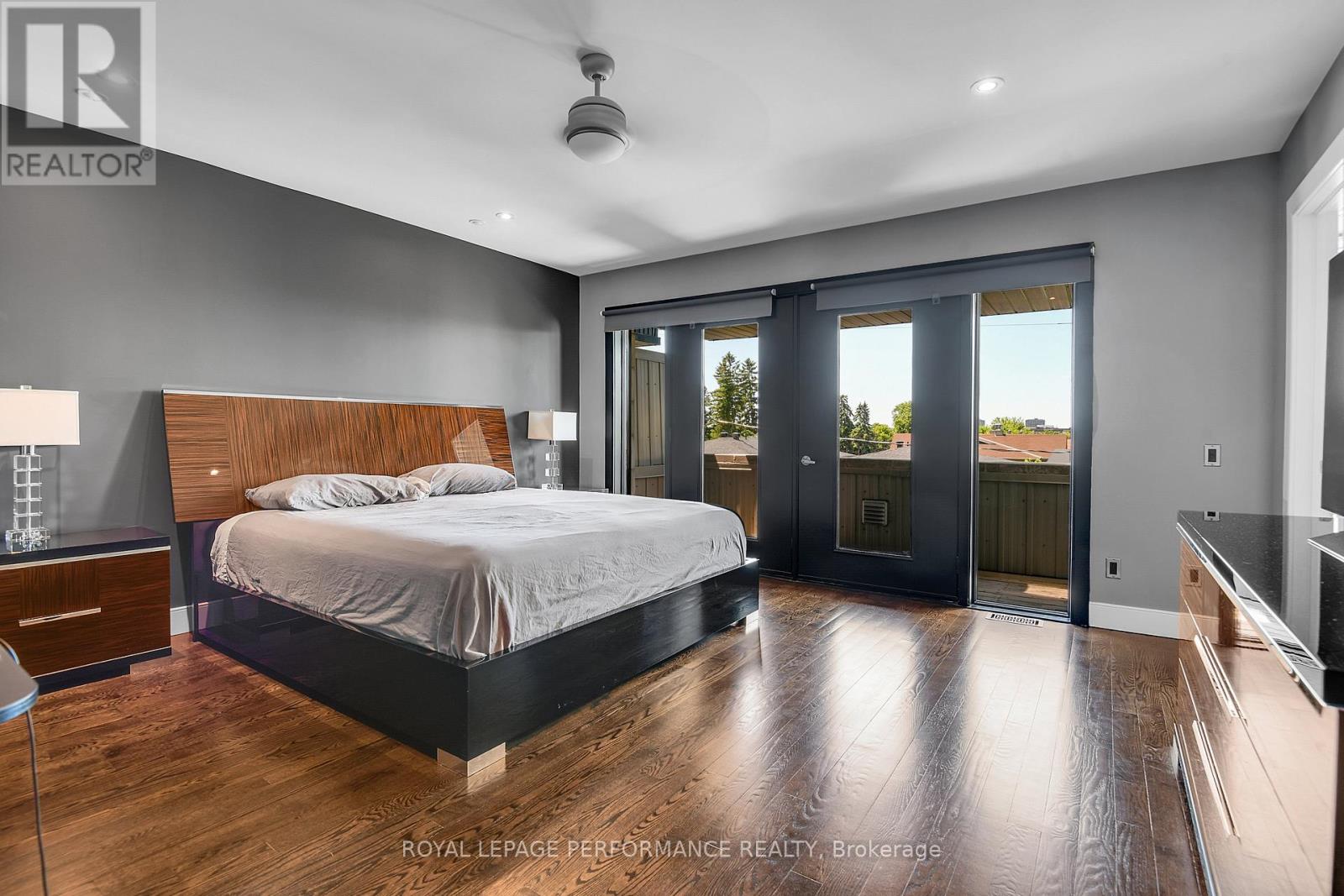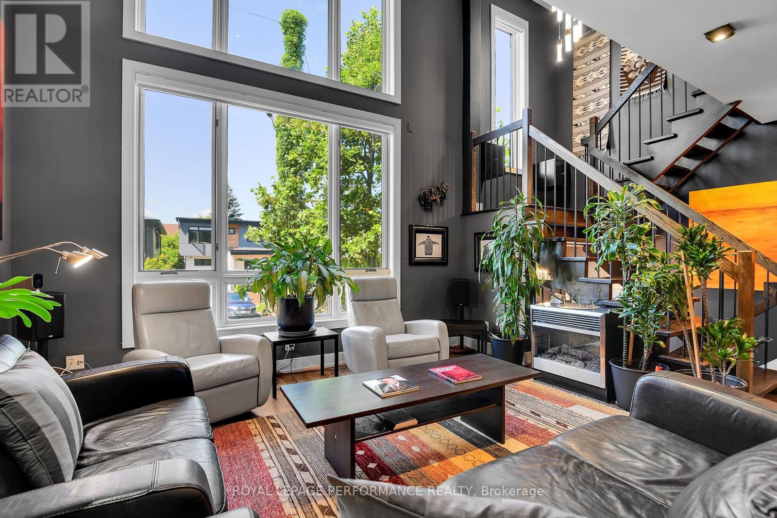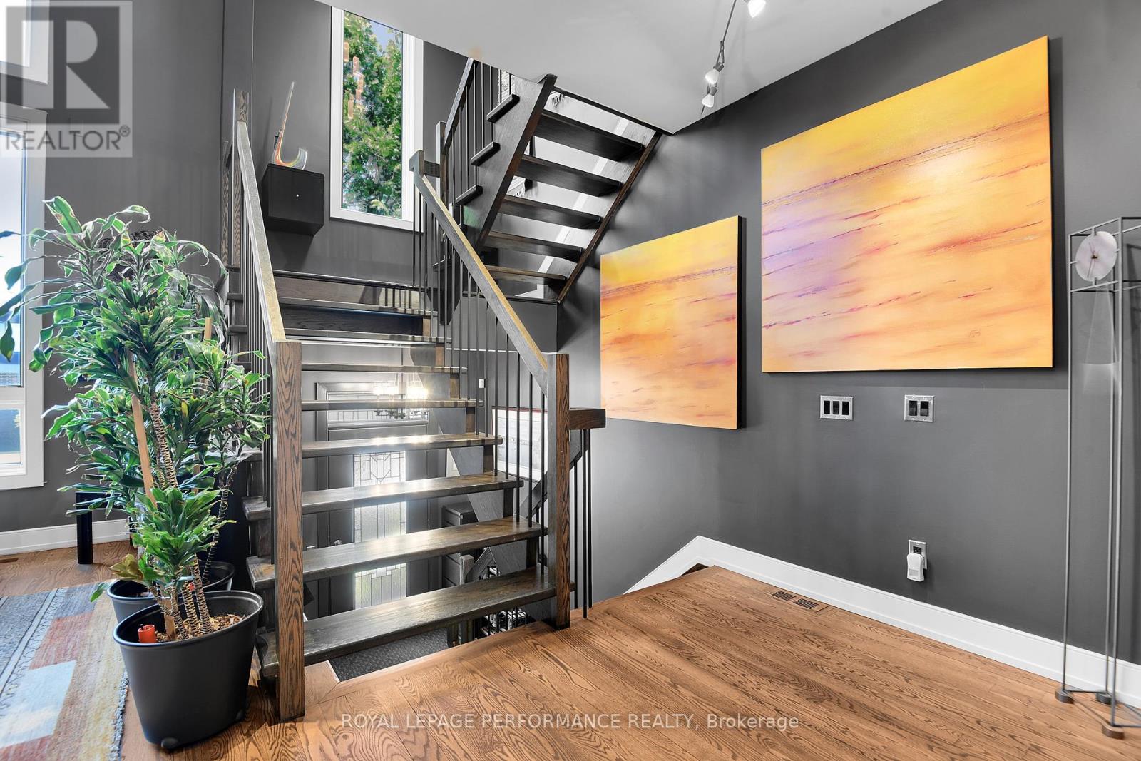 With architectural finesse and modern elegance, this Grey Stone-inspired home delivers over 3,500 sq. ft. of refined living space, crowned by a spectacular rooftop terrace. Inside this wide and spacious home, the chefs kitchen is a statement in style and function quartz countertops, premium appliances, and rich walnut espresso cabinetry create a striking focal point. An open-concept plan flows seamlessly to your maintenance-free private yard. This home is bathed in natural light from expansive, VISTA-film treated windows for UV and IR protection, and a floor to ceiling window with automatic blinds. The second-level loft/great room is equally sun-filled, with hardwood floors carrying through the space. A laundry room is perfectly positioned here for daily ease. The Primary Suite is a serene retreat, featuring a generous walk-in closet, spa-inspired ensuite with waterfall soaker tub, dual vanities, glass shower, and direct access to a patio-sized private balcony. Secondary bedrooms each offer their own personal ensuites including a steam shower in the second bedroom and each boast a private balcony .The fully finished lower level provides direct garage access, a powder room with commercial wash sink, a spacious rec room, and ample storage. Perfect for entertaining, the roof top terrace offers a hot tub, gas hookups, hot/cold water connections, and breathtaking skyline views and sunsets. A private ELEVATOR offers effortless access from the lower level to the third floor, while a heated driveway and 1.5-car garage ensure year-round convenience. Additional highlights include hardwood flooring throughout (except rec room), Central air conditioning, a new high-efficiency heat pump (2024), and a professionally landscaped backyard. Every detail of this residence blends timeless character with contemporary sophistication designed to elevate both everyday living and memorable entertaining. Steps away Shopping and an amenity rich neighbourhood and convenient transit. (id:50982)