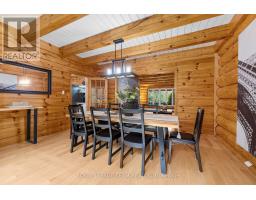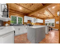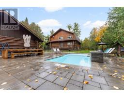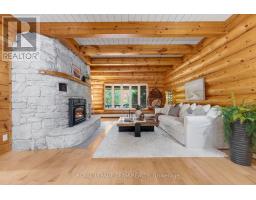 Situated on a peaceful 2-acre lot in Stittsville, this custom-built detached log home is a true masterpiece of rustic elegance and modern comfort. The handcrafted wood exterior and charming front porch invite you into a world where country serenity meets contemporary luxury. Step inside to discover 4 bedrooms and 3 bathrooms spread over an expansive living space, thoughtfully designed for family living and effortless entertaining. The recently updated kitchen steals the spotlight with its gleaming stainless steel appliances, quartz countertops, tiled backsplash, elegant cabinetry, and a bright eat-in area - the perfect space to gather over morning coffee. The main floor's flowing layout connects the dining room and cozy family room, into a spacious living area, all framed by rich wood beams and sweeping views of the surrounding green space. Upstairs, new hardwood flooring guides you to four generously sized bedrooms. The primary suite is a luxurious escape featuring a large walk-in closet and a renovated ensuite adorned with modern finishes. A second full bath, complete with dual vanities and unique touches, ensures comfort for everyone. The basement offers endless flexibility - a perfect spot for a home theatre, gym, or games room and additional storage. Outside, unwind in your private oasis with a newly installed pool, relaxing hot tub, and sprawling lawn - the ideal backdrop for summer gatherings. Year-round comfort is ensured with a radiant heating system with a high efficiency boiler. A detached 2-car log garage provides ample space for vehicles, tools, and outdoor gear. A rare blend of craftsmanship, comfort, and charm - this log home redefines rural luxury just minutes from the heart of Stittsville. 24 hour Irrevocable. (id:50982)
