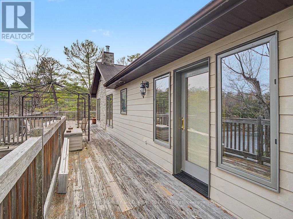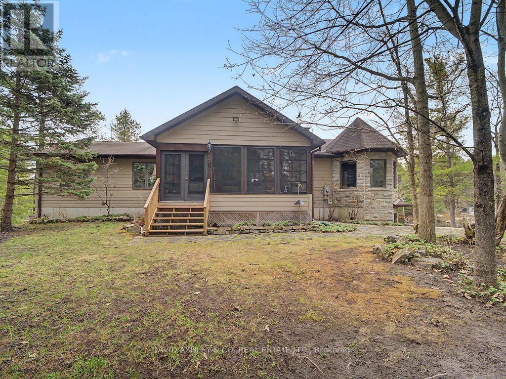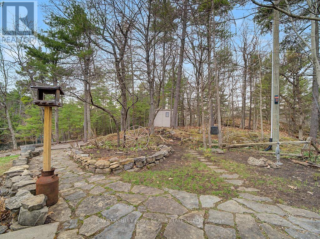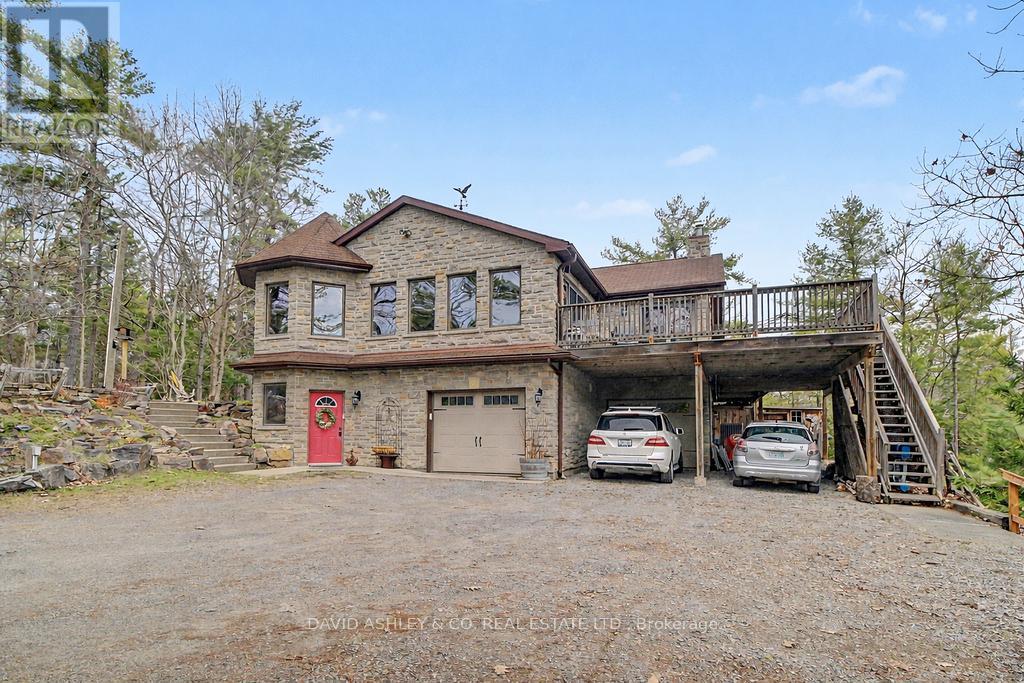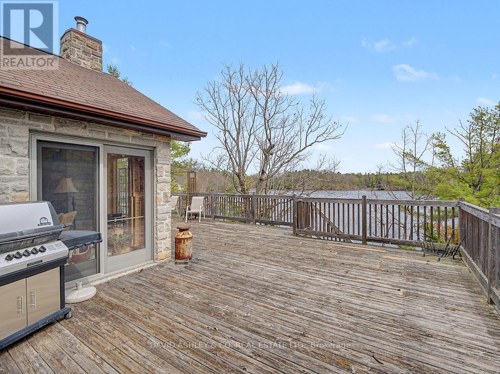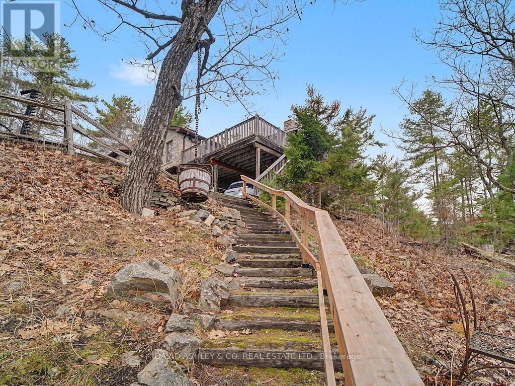 Welcome to 941 Jones Falls Road ...A Spectacular Private Waterfront Oasis located on a huge Treed lot on Sand Lake next to Jones Falls locks. A short distance from the historic 1831 Great Stone Arch Dam. This newly (2006) built raised bungalow boasts 3 +1 bedrooms with optional family room and 2 full bathrooms. Enjoy the 270 degree view of your very own 510 ft of waterfront nestled amongst mature trees on a tranquil private point. This maintenace free Stone clad home with Open Concept living boasts a floor to ceiling stone propane Fireplace in the Great room as well as a second gas fireplace in the lower level family room. The cathedral ceilings with custom woodwork and trim throughout create a quaint cottage feel with all the modern amenities of today's upscale living. A massive 60 ft deck with portable gazebo extends the entire lakeside front of this home with numerous access points off the primary bedroom, great room and kitchen. Enjoy deep crystal clear water for swimming, boating and fishing. The custom stairs from your private dock allows for safe easy access to and from the water. The landscaping is truly picturesque with a handy watering system pulling water from the lake for watering the numerous gardens. When the flowers are in full bloom the scenic gardens are right out of a magazine. The oversized double car garage allows for 3 large vehicles or storage for your water toys. The entertaining Gourmet Kitchen with custom cabinetry and pull out drawers is an absolute dream for the aspiring chef. A cozy octagonal kitchen breakfast nook surrounded in floor to ceiling windows is a favorite place to enjoy a peaceful morning coffee. One of the main features of this home are the oversized windows...every room comes with an unforgetable view of nature at its finest...floor to ceiling windows allow an abundance of natural light throughout this home all day long. This home is a Must See for the discriminating waterfront enthusiast...book your private viewing today (id:50982)