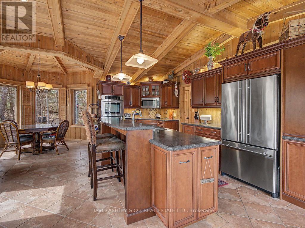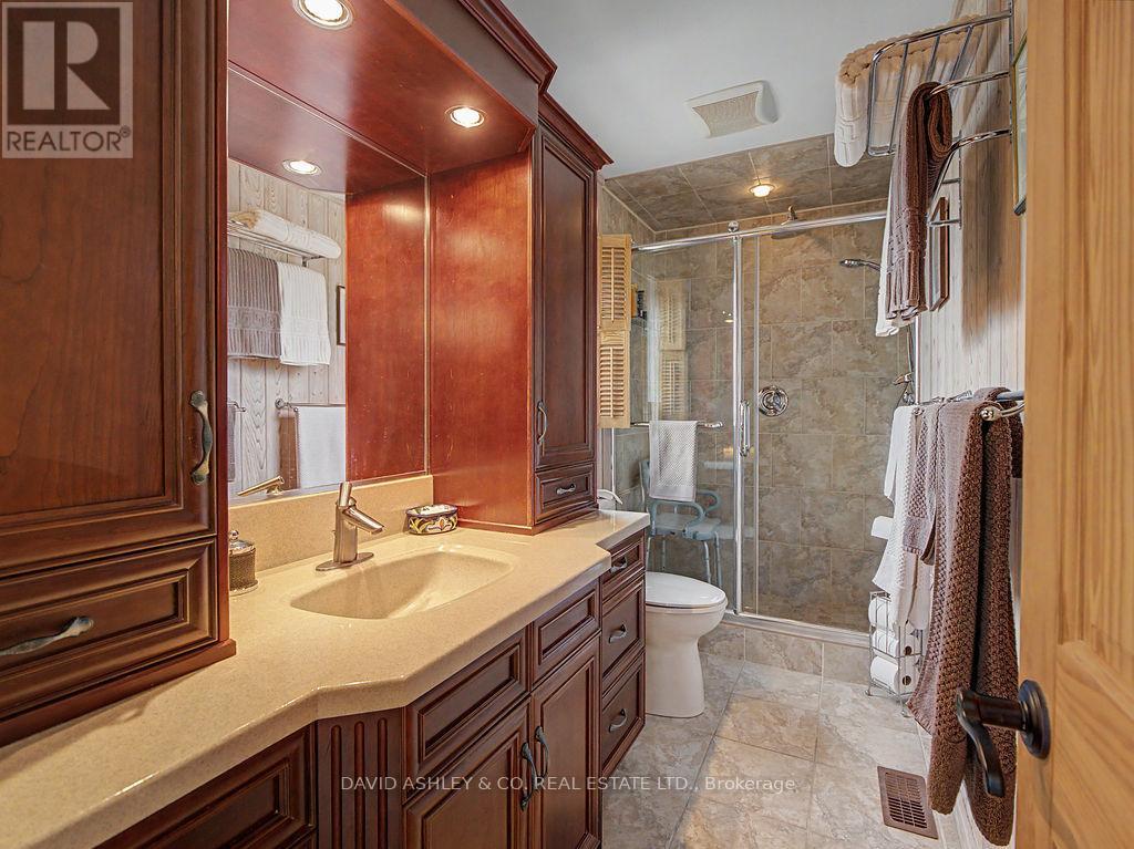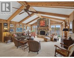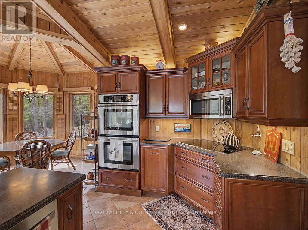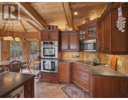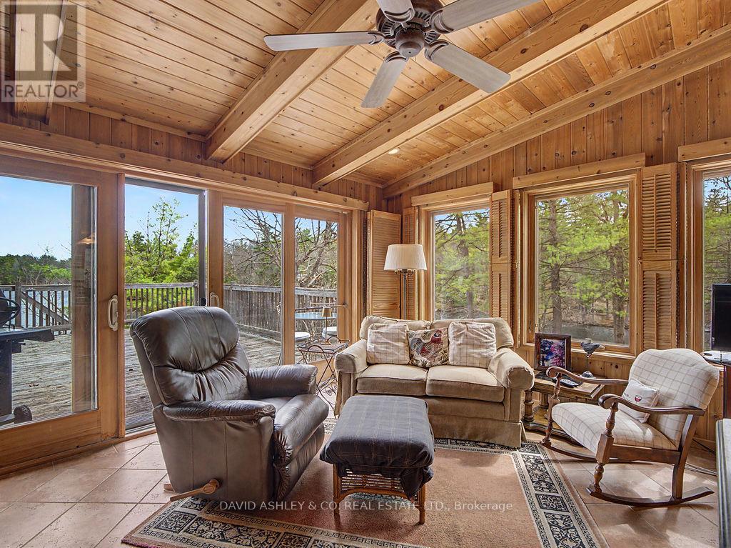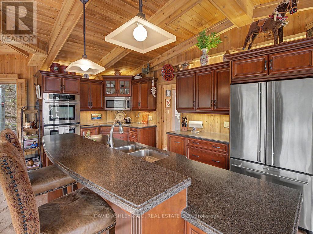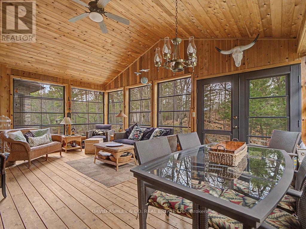 Welcome to 941 Jones Falls Road ...A Spectacular Private Waterfront Oasis located on a huge Treed lot on Sand Lake next to Jones Falls locks. A short distance from the historic 1831 Great Stone Arch Dam. This newly (2006) built raised bungalow boasts 3 +1 bedrooms with optional family room and 2 full bathrooms. Enjoy the 270 degree view of your very own 510 ft of waterfront nestled amongst mature trees on a tranquil private point. This maintenace free Stone clad home with Open Concept living boasts a floor to ceiling stone propane Fireplace in the Great room as well as a second gas fireplace in the lower level family room. The cathedral ceilings with custom woodwork and trim throughout create a quaint cottage feel with all the modern amenities of today's upscale living. A massive 60 ft deck with portable gazebo extends the entire lakeside front of this home with numerous access points off the primary bedroom, great room and kitchen. Enjoy deep crystal clear water for swimming, boating and fishing. The custom stairs from your private dock allows for safe easy access to and from the water. The landscaping is truly picturesque with a handy watering system pulling water from the lake for watering the numerous gardens. When the flowers are in full bloom the scenic gardens are right out of a magazine. The oversized double car garage allows for 3 large vehicles or storage for your water toys. The entertaining Gourmet Kitchen with custom cabinetry and pull out drawers is an absolute dream for the aspiring chef. A cozy octagonal kitchen breakfast nook surrounded in floor to ceiling windows is a favorite place to enjoy a peaceful morning coffee. One of the main features of this home are the oversized windows...every room comes with an unforgetable view of nature at its finest...floor to ceiling windows allow an abundance of natural light throughout this home all day long. This home is a Must See for the discriminating waterfront enthusiast...book your private viewing today (id:50982)