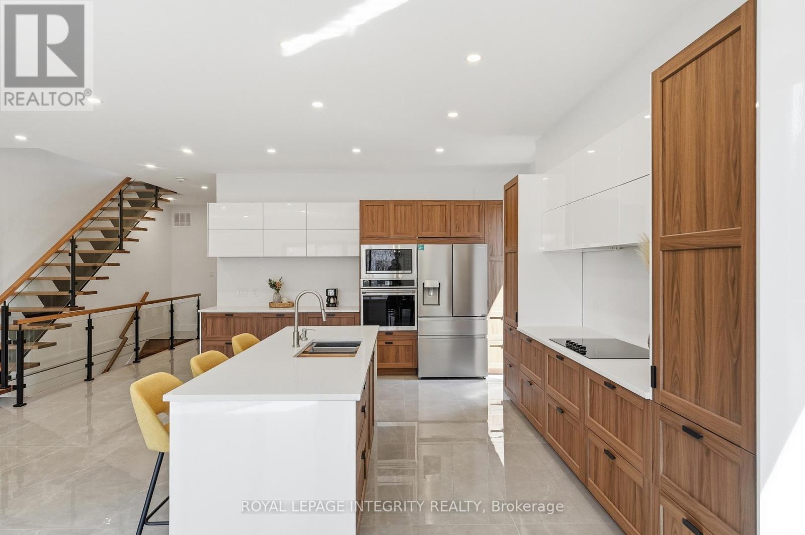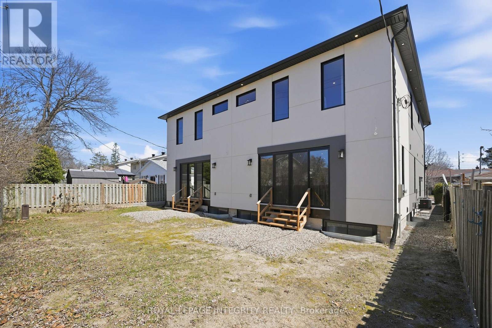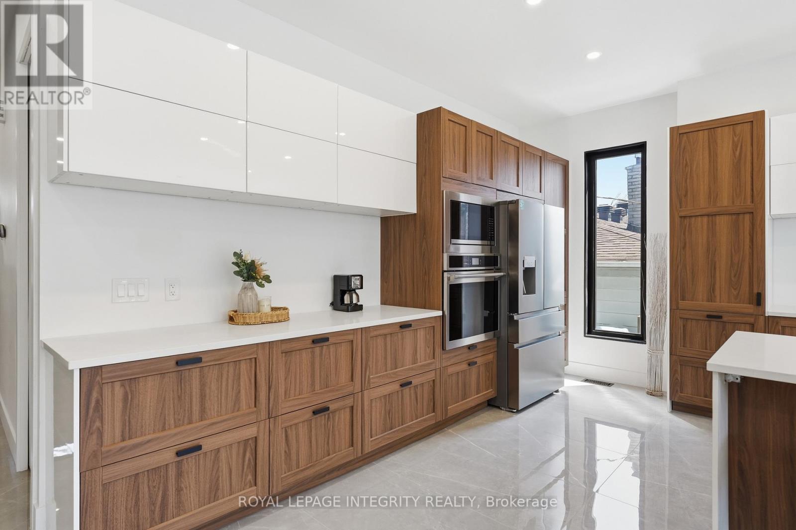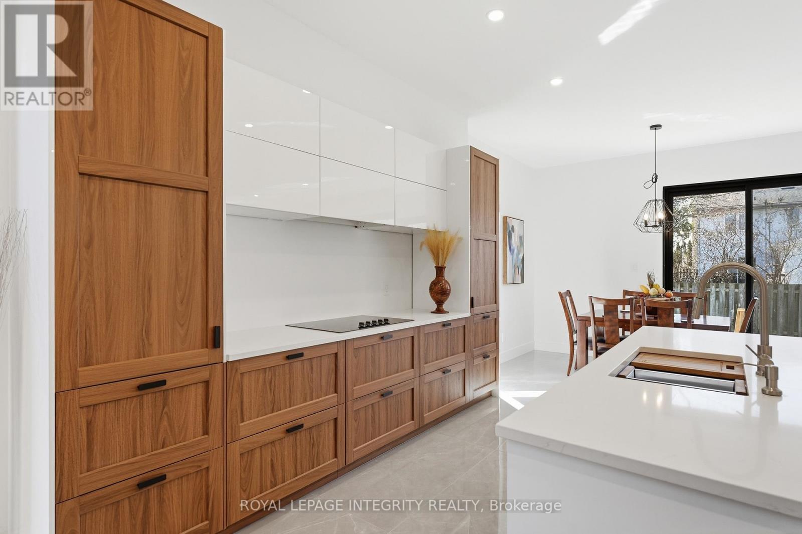 Welcome to 984 Watson Street, a stunning brand new custom semi-detached home that perfectly blends modern design with everyday functionality. Offering over 2,900 sq.ft. of thoughtfully designed living space, this home features 3+1 bedrooms and 3+1 bathrooms, and an attached garage with inside entry. Step into the bright, open-concept main level where large-format flooring, pot lights, and expansive windows create an inviting atmosphere. The designer two-tone kitchen is the heart of the home, complete with quartz countertops, a waterfall island, double wall ovens, sleek cooktop, and ample cabinetry, flowing seamlessly into the dining area and spacious great room with a striking linear fireplace and oversized sliding doors to the yard. A statement open-riser staircase adds architectural flair, while a convenient mudroom/laundry and powder room complete the level. Upstairs, you'll find a versatile loft space ideal for a home office or reading nook, along with three well-sized bedrooms. The primary suite offers a relaxing retreat with a walk-in closet and a beautifully finished ensuite featuring double sinks, a soaker tub, and a separate glass shower. The fully finished basement expands your options with a self-contained setup that includes its own entrance, living space, bedroom, full bath, and kitchenette-ideal for extended family, guests, or added income potential. Located in a family-friendly neighbourhood close to top amenities, minutes to IKEA, Bayshore Shopping Centre, Algonquin College, and Hwy 417, with convenient transit access at Pinecrest Station. Enjoy nearby parks and outdoor spaces including the Ottawa River Pathway, Elmhurst Park, Frank Ryan Park, and Britannia Beach. (id:50982)