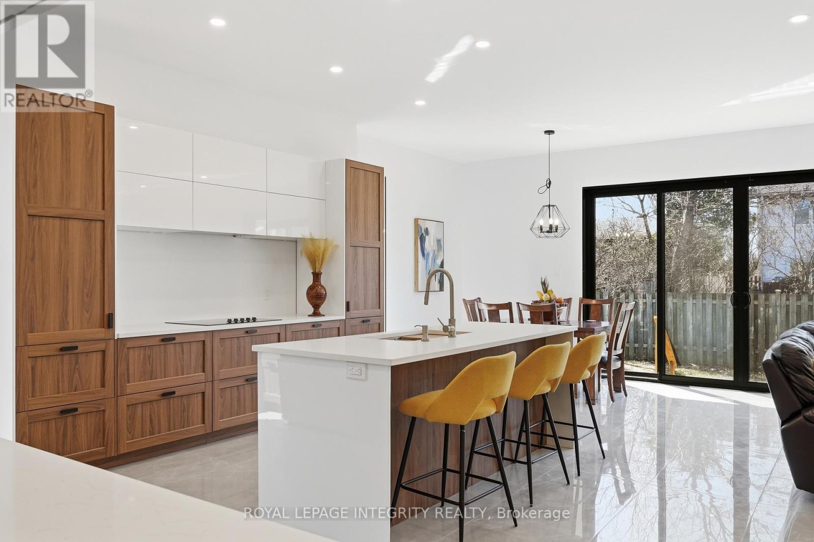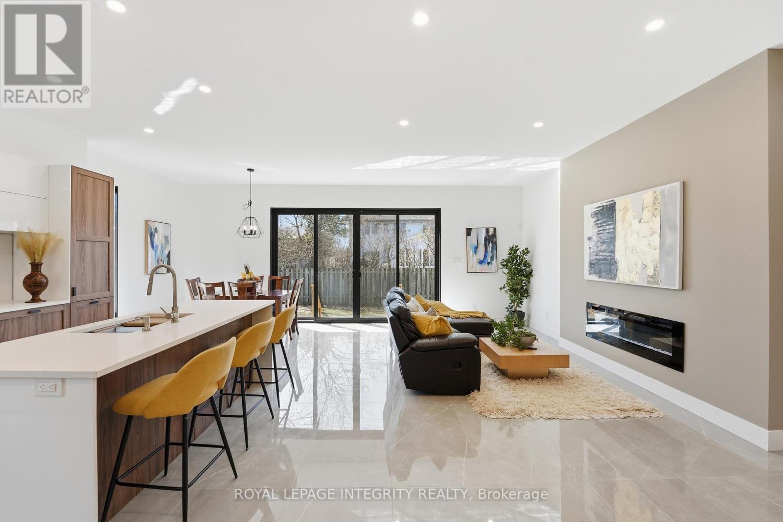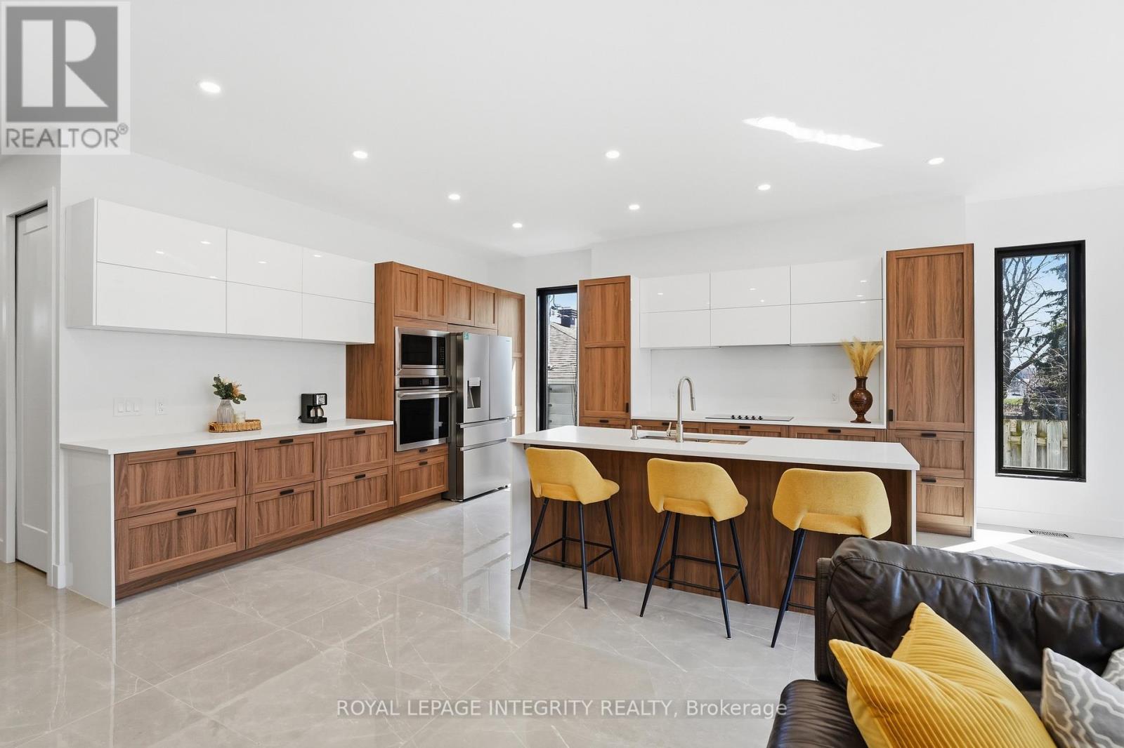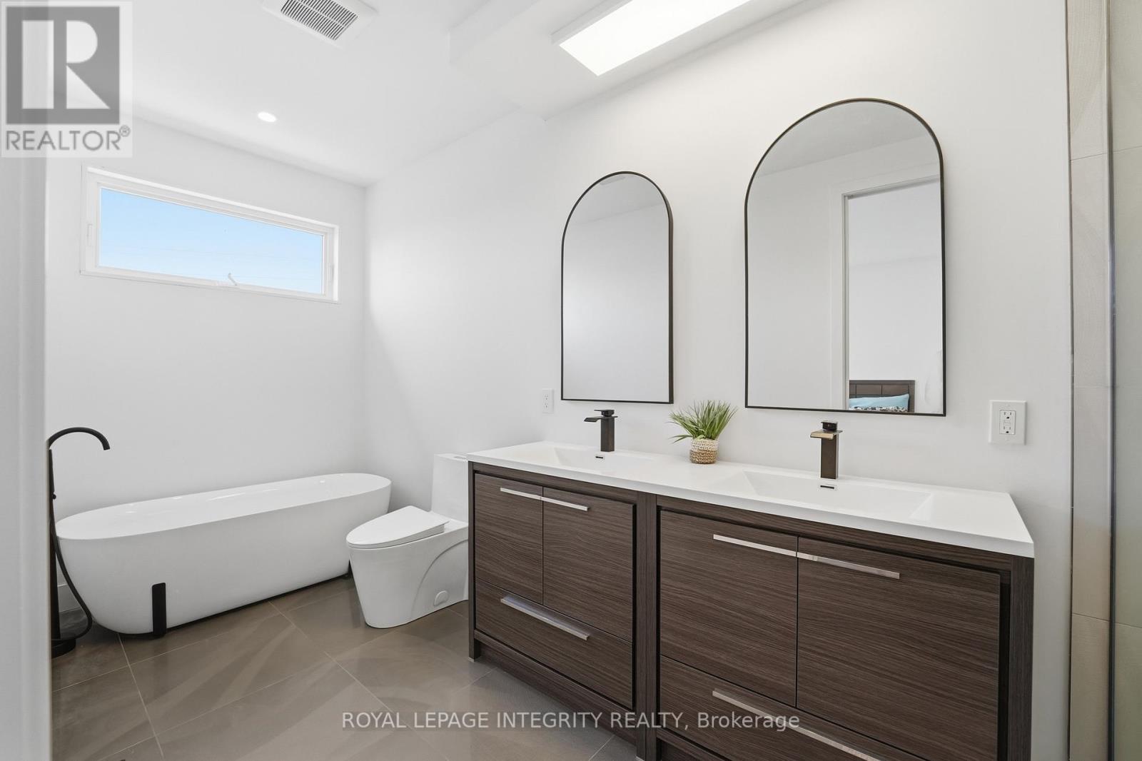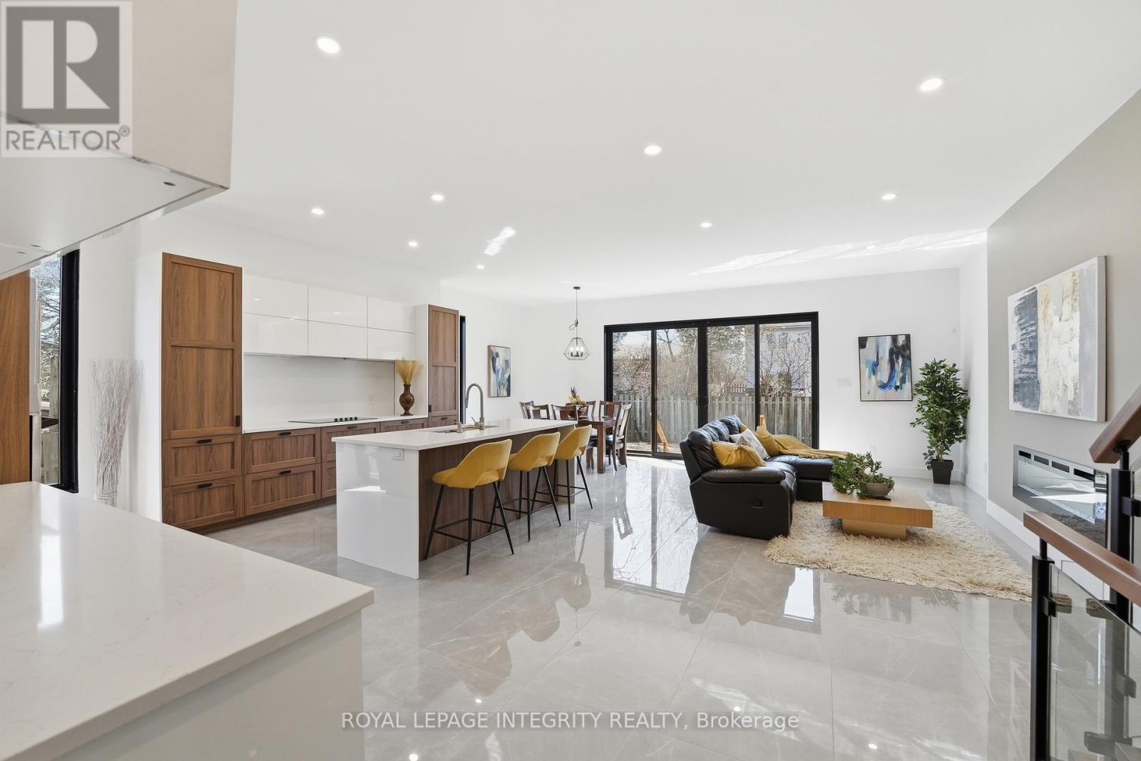 Welcome to 984 Watson Street, a stunning brand new custom semi-detached home that perfectly blends modern design with everyday functionality. Offering over 2,900 sq.ft. of thoughtfully designed living space, this home features 3+1 bedrooms and 3+1 bathrooms, and an attached garage with inside entry. Step into the bright, open-concept main level where large-format flooring, pot lights, and expansive windows create an inviting atmosphere. The designer two-tone kitchen is the heart of the home, complete with quartz countertops, a waterfall island, double wall ovens, sleek cooktop, and ample cabinetry, flowing seamlessly into the dining area and spacious great room with a striking linear fireplace and oversized sliding doors to the yard. A statement open-riser staircase adds architectural flair, while a convenient mudroom/laundry and powder room complete the level. Upstairs, you'll find a versatile loft space ideal for a home office or reading nook, along with three well-sized bedrooms. The primary suite offers a relaxing retreat with a walk-in closet and a beautifully finished ensuite featuring double sinks, a soaker tub, and a separate glass shower. The fully finished basement expands your options with a self-contained setup that includes its own entrance, living space, bedroom, full bath, and kitchenette-ideal for extended family, guests, or added income potential. Located in a family-friendly neighbourhood close to top amenities, minutes to IKEA, Bayshore Shopping Centre, Algonquin College, and Hwy 417, with convenient transit access at Pinecrest Station. Enjoy nearby parks and outdoor spaces including the Ottawa River Pathway, Elmhurst Park, Frank Ryan Park, and Britannia Beach. (id:50982)