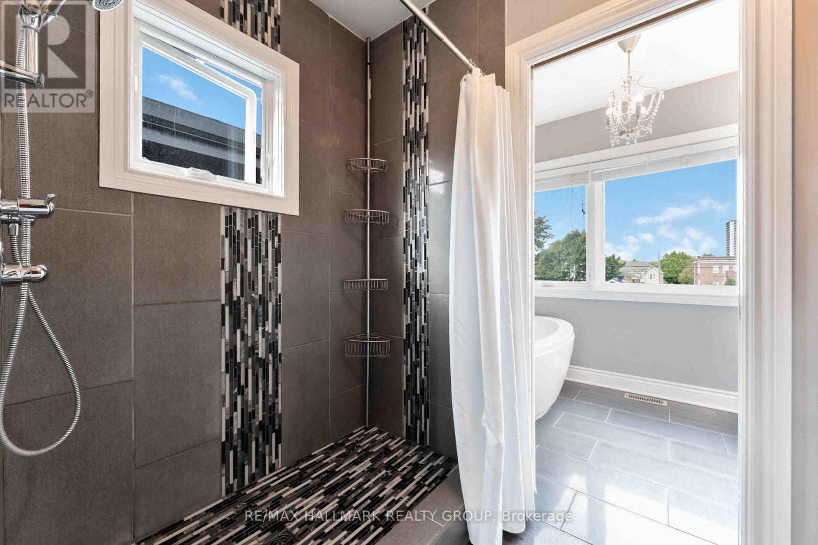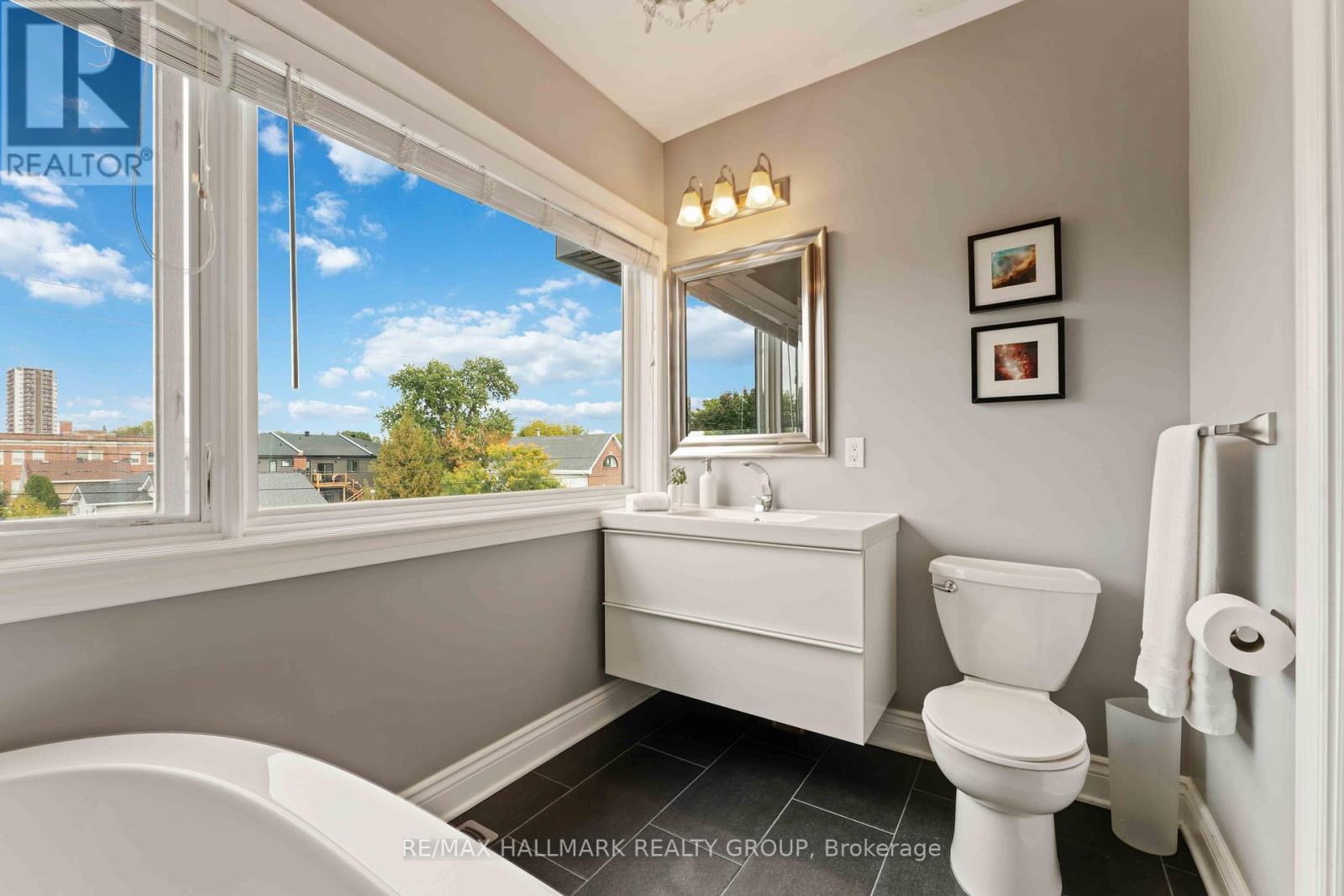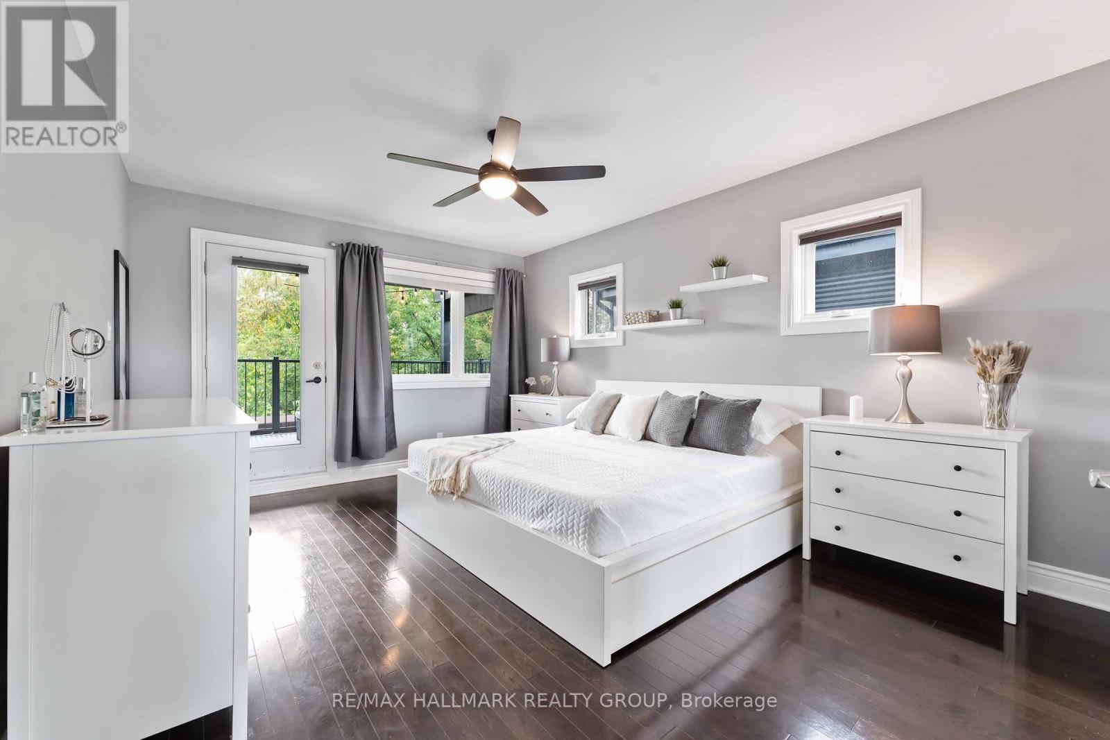 OPEN HOUSE - SUNDAY OCTOBER 5th 2-4PM. Award-Winning Hamel Designed Semi-Detached. This stunning sun filled 3-storey semi-detached blends modern design with urban convenience, just 10 minutes to downtown and an 8-minute walk to Tremblay LRT/VIA Rail. The open-concept main level with hardwood floors features 9' ceilings, a chef's kitchen with granite counters, undermount sink and breakfast bar. Kitchen opens to the living room with gas fireplace and door to the private back yard. The second floor offers a master-sized 2nd bedroom, 3rd bedroom, a full bath plus a bright den/workout room with balcony and view. The top level features a luxurious primary suite, spa-inspired ensuite, and a covered patio retreat. The versatile lower level includes a family room (or 4th bedroom), full bath, and bar ideal for entertaining or future apartment conversion. Unbeatable location: steps to the Overbrook Community Center (programs, Sens Rink of Dreams, sports fields, dog park), minutes to shopping and the Rideau Sports Centre. Only 2 blocks to the Rideau River trails and a 20-minute walk to the University of Ottawa. An urban lifestyle gem by an award-winning designer. Upgrades: Bathroom Vanities, sinks, faucets (2022). Vinyl plank flooring on second level (2019), Refinished hardwood flooring (2025), Hardscape & interlock -front, side and back (2023), Eavestrough (2022). On demand hot water heater (2024), Washing machine (2024), Dishwasher (2020), Stove (2022), Built in closet organizers (2022). (id:50982)